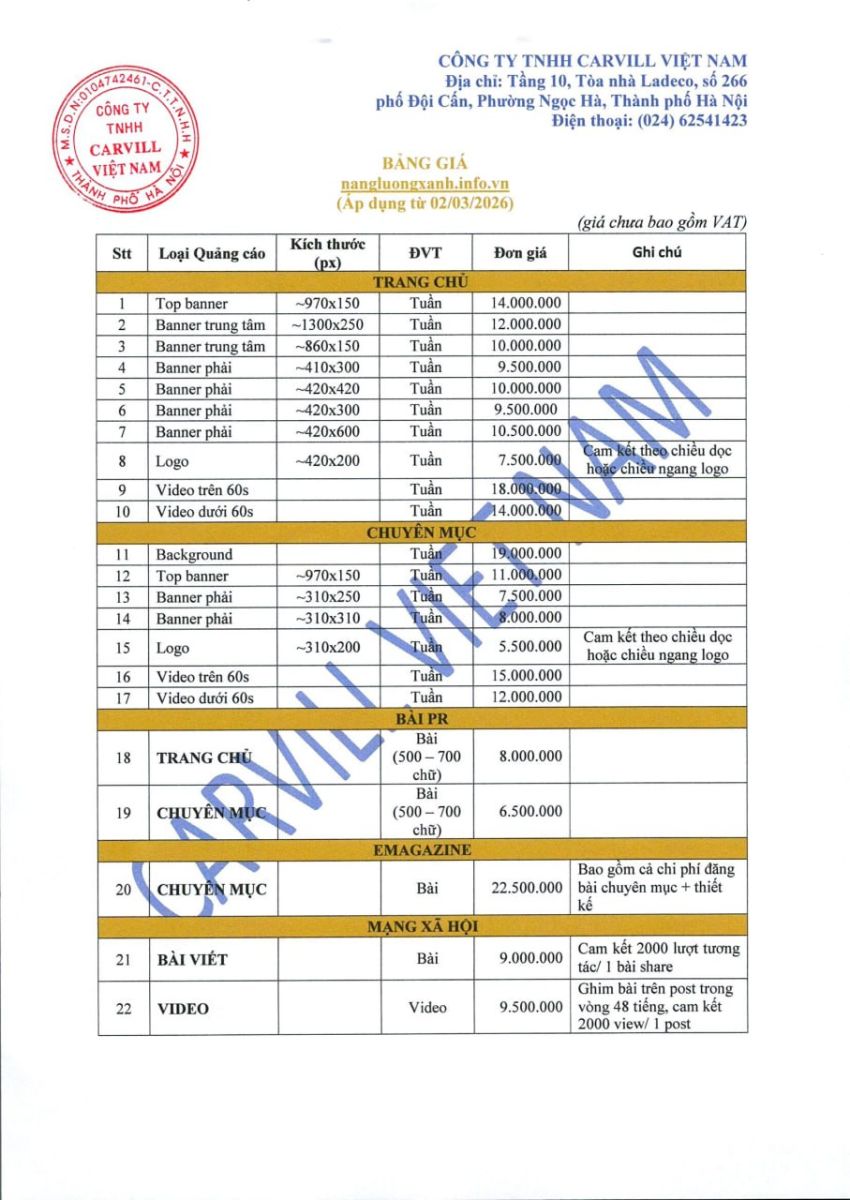 ĐT: 024 62541423 | Email: media-booking@carvill-vietnam.com