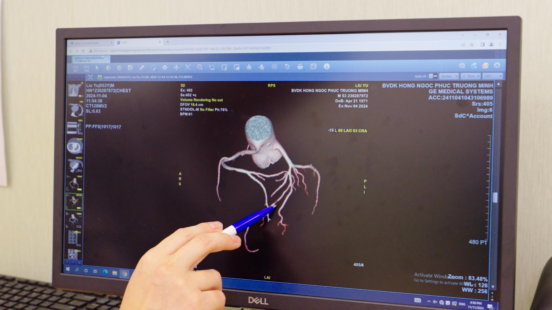 Bệnh nhân nam, 57 tuổi có tiền sử rung nhĩ, phát hiện hẹp nặng mạch vành nhờ chụp CT 2560 lát cắt đầu tiên tại Việt Nam. Sau đó, các bác sĩ BVĐK Hồng Ngọc nhanh chóng can thiệp tái thông mạch vành cho bệnh nhân, tránh được nguy cơ gây nhồi máu cơ tim nguy hiểm.