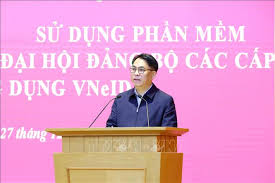 Sáng 27/12, tại Hà Nội, Ban Tổ chức Trung ương phối hợp với Văn phòng Trung ương Đảng, Bộ Công an tổ chức Hội nghị tập huấn toàn quốc sử dụng phần mềm Theo dõi tiến trình đại hội đảng bộ các cấp qua ứng dụng VNeID.