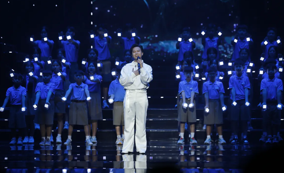 "Phép chia lạ kỳ" do Bùi Công Nam thể hiện cùng 30 học sinh Trường HOPE (Ảnh: VTV)