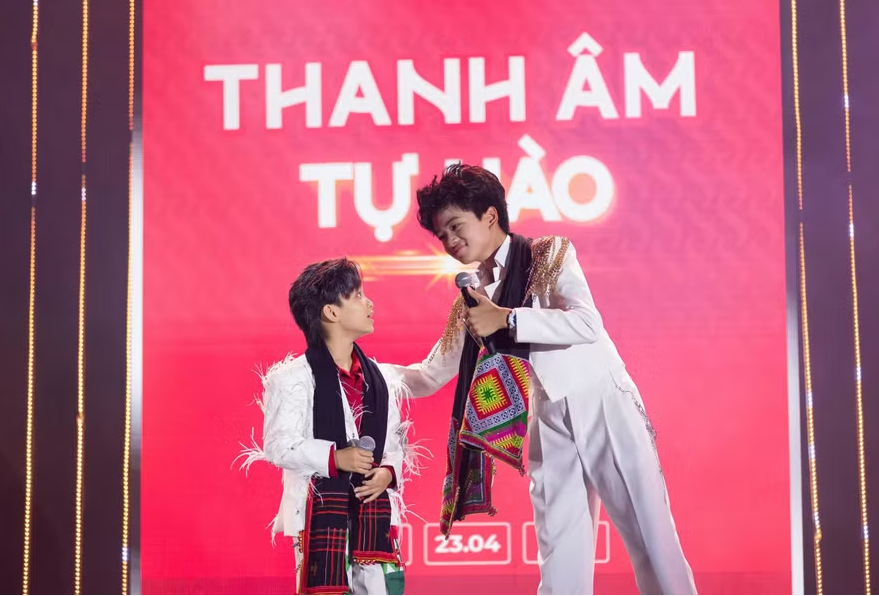 Ca sĩ nhí Cao Phú Quý và em Dương Tuấn Anh, học sinh của Hệ thống Giáo dục Nobel School cùng song ca.