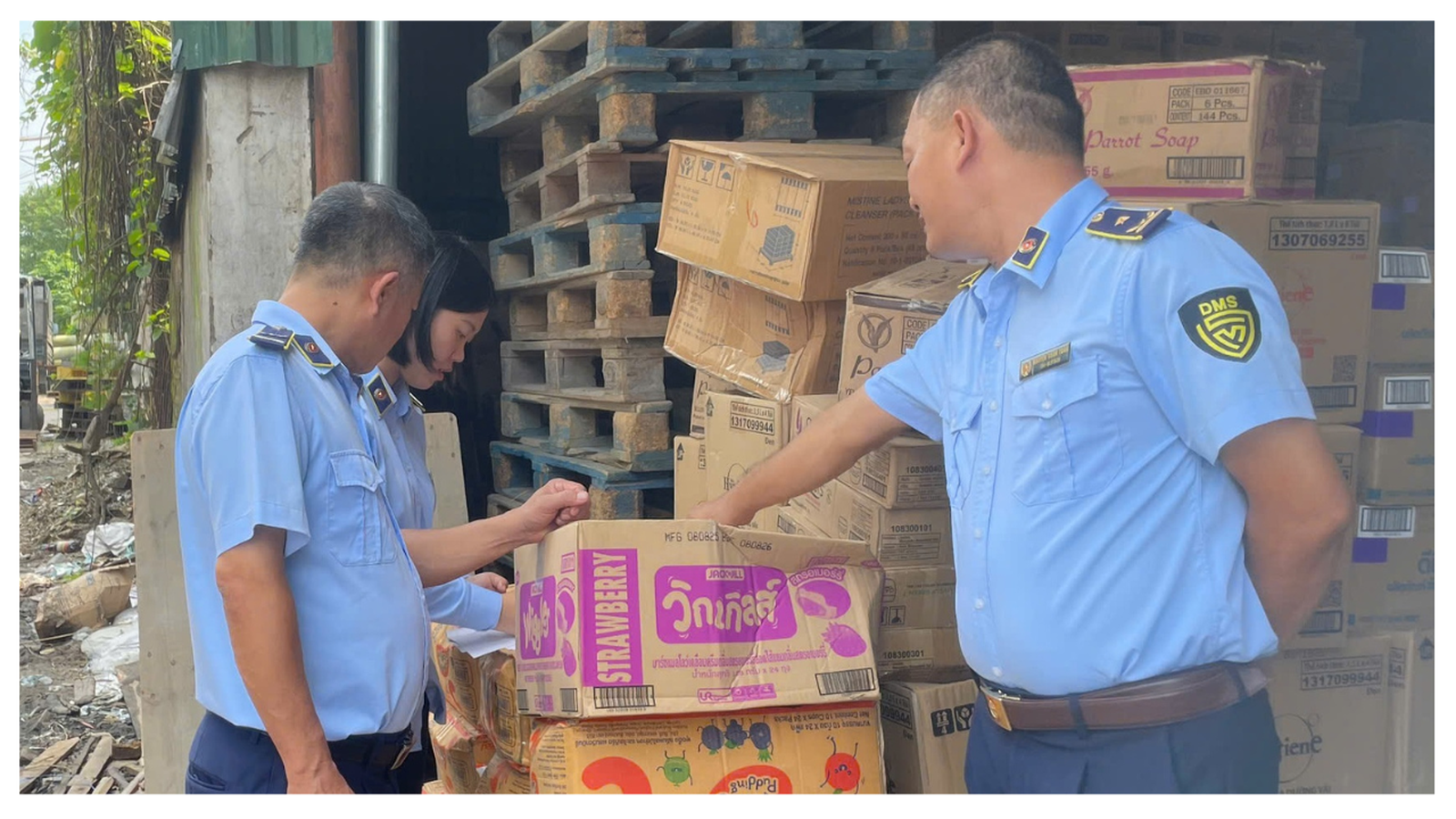 Tại phường Long Biên, Đội Quản lý thị trường số 16 phối hợp với Phòng Cảnh sát kinh tế kiểm tra địa điểm kinh doanh số 35 Thạch Cầu của Công ty TNHH Thương mại và Xuất nhập khẩu Nam Anh. Lực lượng chức năng phát hiện nhiều sản phẩm do nước ngoài sản xuất gồm 360 gói thạch sữa chua Pudding DeeDo Mikku, 120 gói kẹo dẻo Wiggles và 180 chai nước cốt chanh, tổng trị giá khoảng 35,1 triệu đồng. Toàn bộ số hàng không có hóa đơn, chứng từ hợp pháp và không có nhãn phụ tiếng Việt theo quy định.