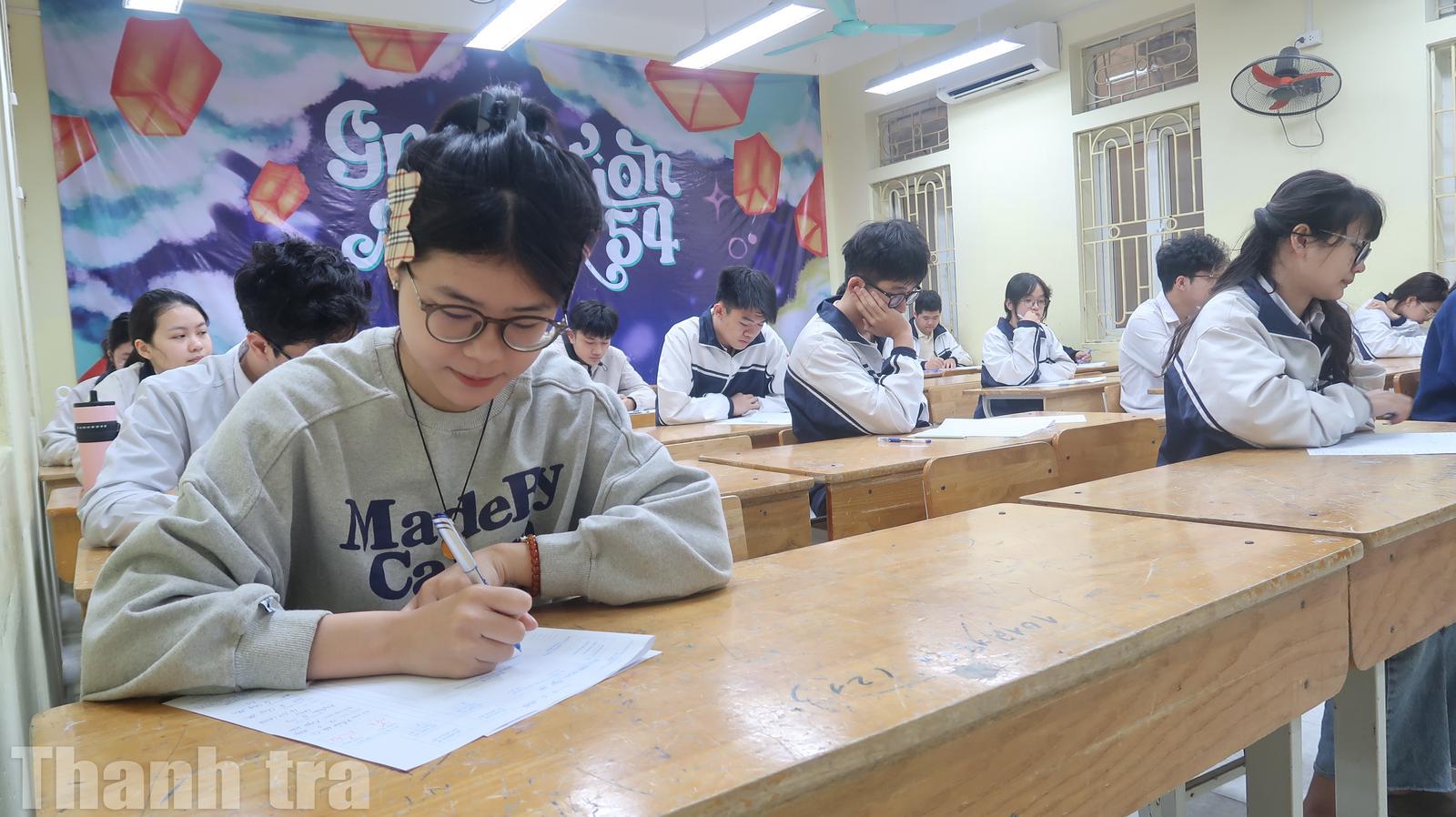 Chung suy nghĩ, Nguyễn Minh Bảo Châu, học sinh Trường THPT Cầu Giấy tâm sự: Năm lớp 11 đã tham gia kỳ khảo sát toàn thành phố nên phần nào quen với cấu trúc đề. Năm trước, em còn một số sơ suất do chưa hiểu kỹ định dạng đề, nhất là cách phân bổ thời gian. Từ đầu năm học đến nay, em chủ động nghiên cứu kỹ cấu trúc, làm thêm đề minh họa và được thầy, cô hướng dẫn thường xuyên nên cũng tự tin hơn trước.