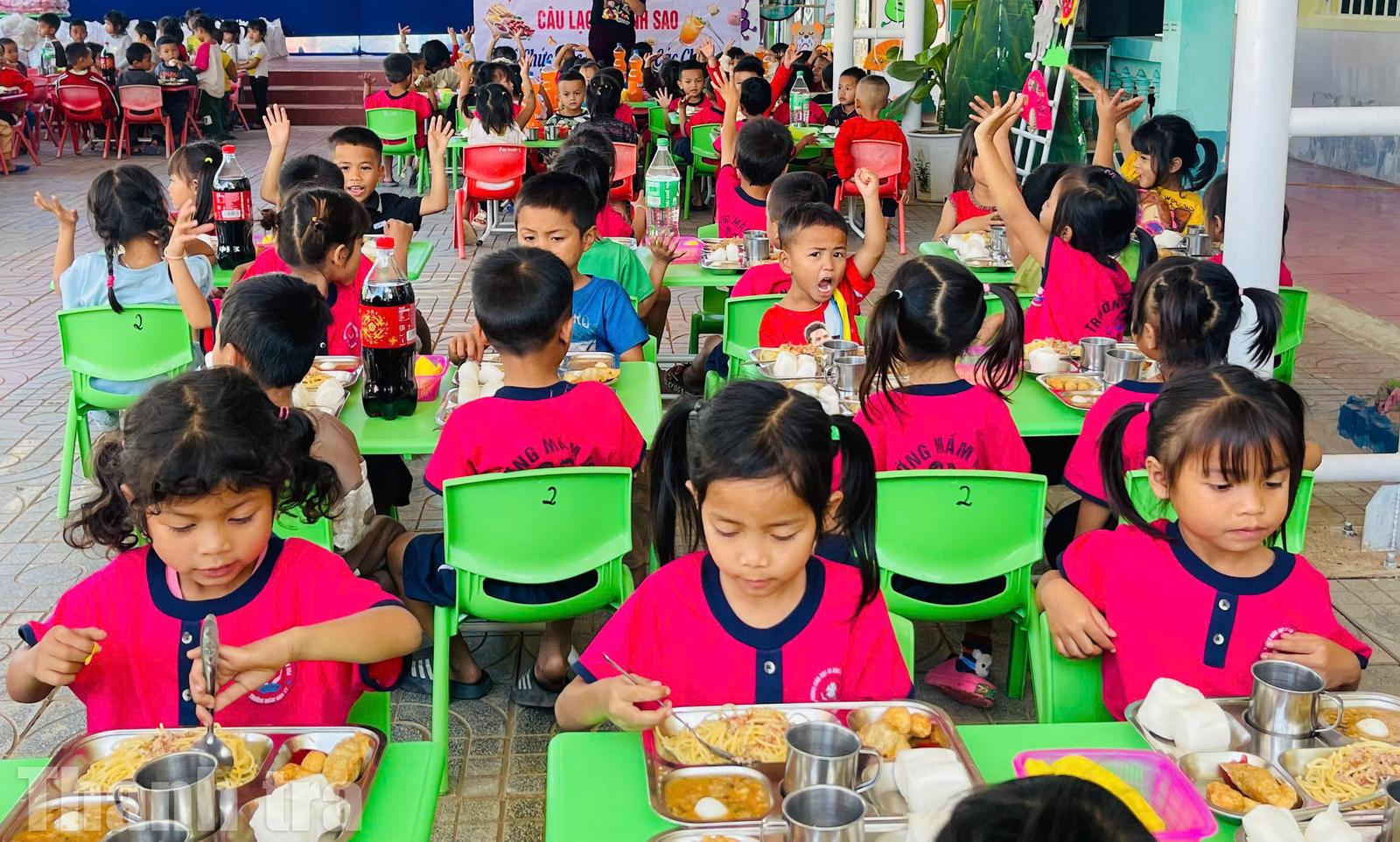 Cảnh tượng ấy, vài năm trước vẫn còn xa lạ. Có nơi chỉ là bãi đất trống, mùa mưa lầy lội, mùa nắng bụi đỏ. Hôm nay, những ngôi trường liên cấp khang trang đã mọc lên, đủ lớp học, khu bán trú, bếp ăn, nhà đa năng, sân chơi. Con chữ vì thế bám rễ bền hơn vào từng bản làng.