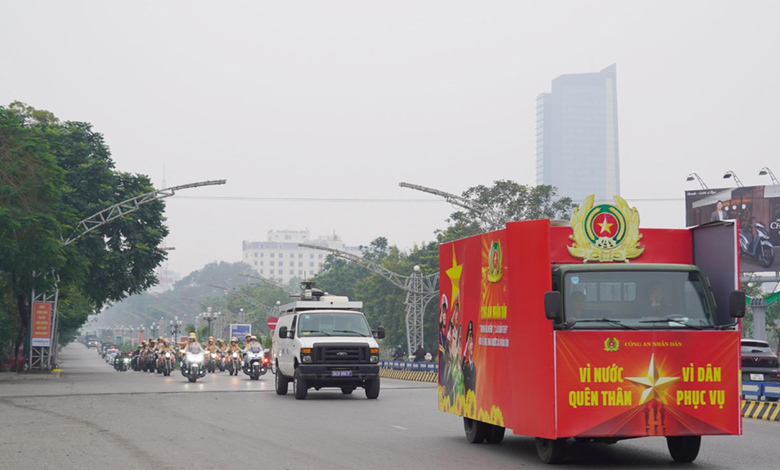 Các lực lượng đã tổ chức diễu hành biểu dương lực lượng trên một số tuyến đường chính trên địa bàn của tỉnh Thanh Hoá. Ảnh: Công an Thanh Hoá.