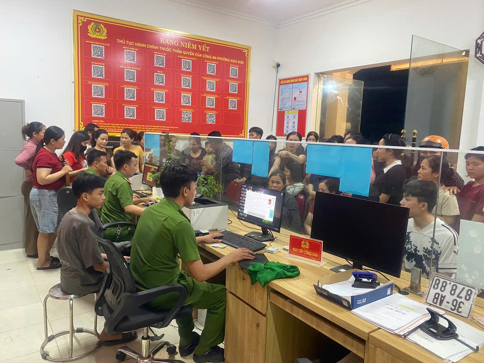 Công an các xã, phường trên địa bàn tỉnh Thanh Hoá làm thêm giờ vào các buổi tối để thu nhận, cài đặt, kích hoạt tài khoản định danh điện tử cho học sinh. Ảnh: Thuý Hằng