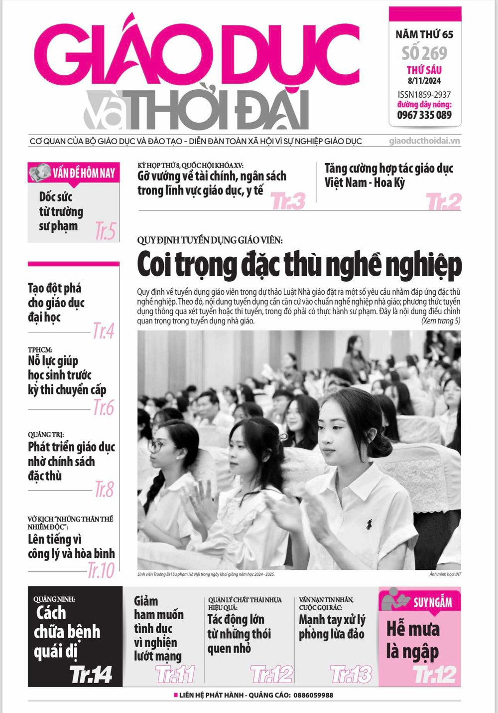 Tổng hợp tin bài mới và hay nhất trên báo giấy Giáo dục và Thời đại số 269 ngày 8/11/2024.