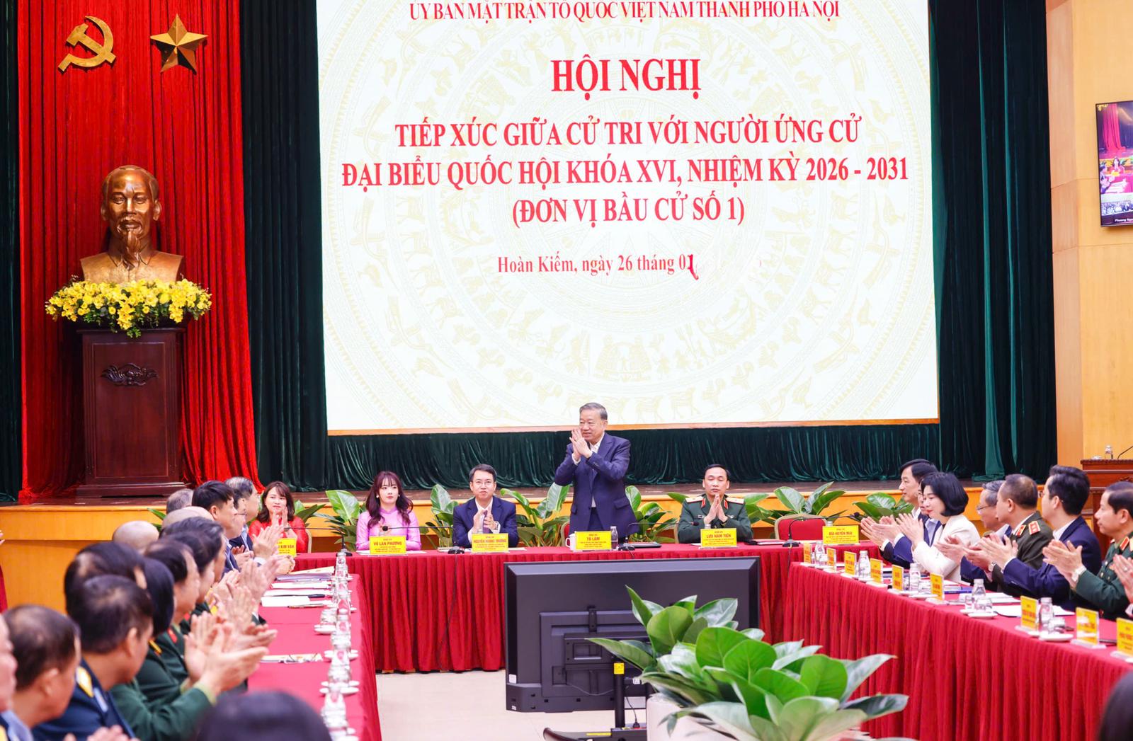 Tổng Bí thư Tô Lâm cùng các ứng cử viên đại biểu Quốc hội khóa XVI đã tiếp xúc cử tri Hà Nội ngày 26/2, trình bày chương trình hành động và lắng nghe ý kiến người dân về phát triển đất nước.