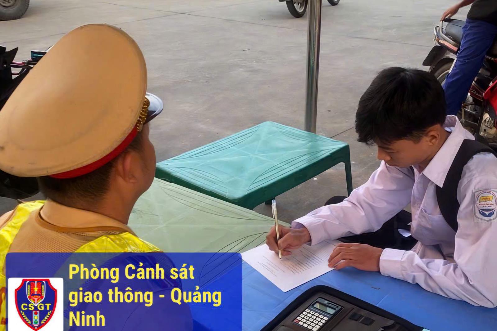 Xử lý học sinh ở Quảng Ninh vi phạm. Ảnh: CSGT