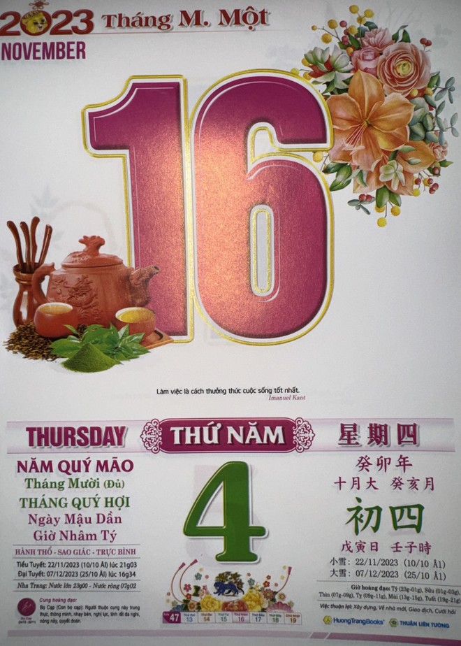 Xem lịch âm - Lịch vạn sự hôm nay ngày 16 tháng 11 năm 2023 tốt hay xấu?
