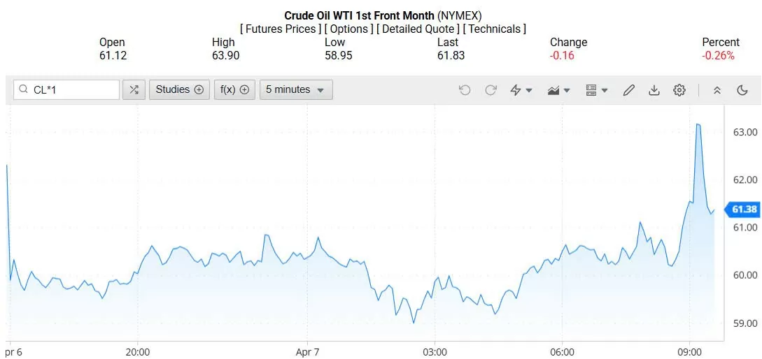 Giá dầu WTI trên thị trường thế giới rạng sáng 08/04/2025 (theo giờ Việt Nam) |