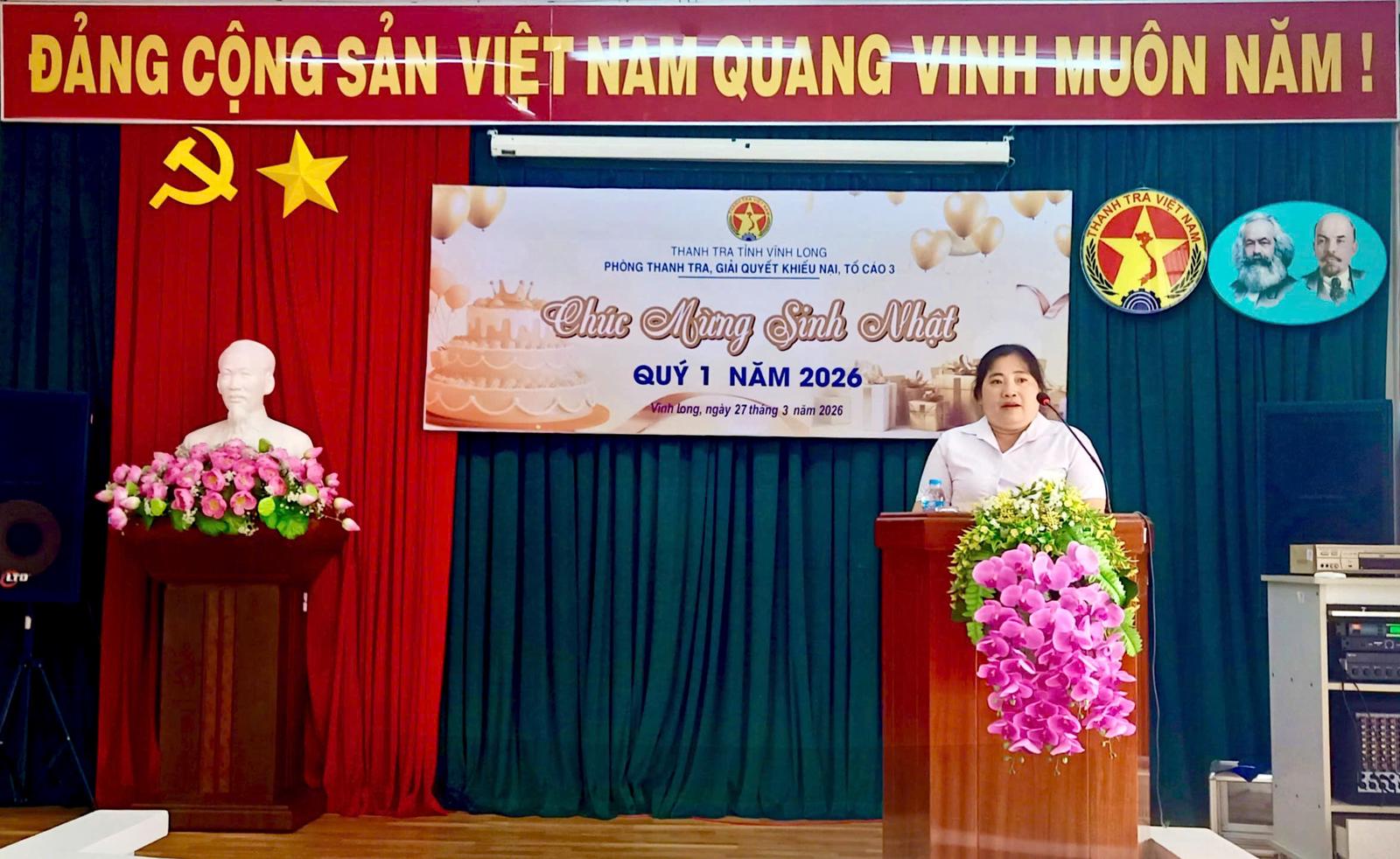 Chính trong môi trường làm việc đầy áp lực và có phần khô khan của những quy định pháp luật, việc xây dựng một tập thể đoàn kết, biết sẻ chia và thấu cảm trở nên quan trọng hơn bao giờ hết. Tại Phòng Thanh tra, giải quyết khiếu nại, tố cáo 3 – Thanh tra tỉnh Vĩnh Long, tinh thần ấy không phải là những khẩu hiệu xa vời, mà được nuôi dưỡng từ những hoạt động nội bộ hết sức giản dị nhưng lại giàu tính nhân văn. Một trong số đó là buổi sinh hoạt chúc mừng sinh nhật quý I năm 2026, một khoảnh khắc dừng chân hiếm hoi giữa nhịp sống công vụ hối hả để các thành viên xích lại gần nhau hơn.