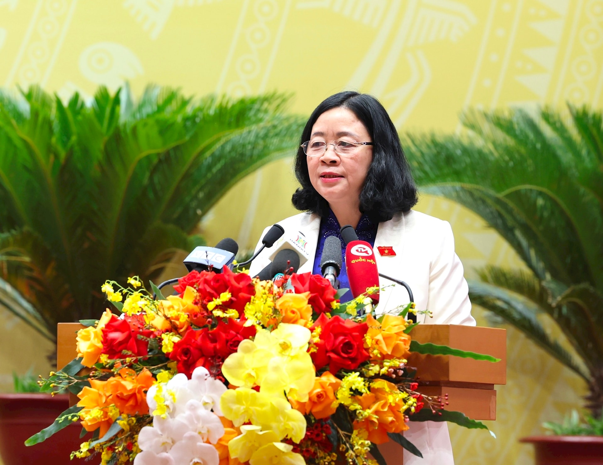| Bí thư Thành ủy Hà Nội Bùi Thị Minh Hoài phát biểu chỉ đạo kỳ họp thứ 20 HĐND TP Hà Nội |