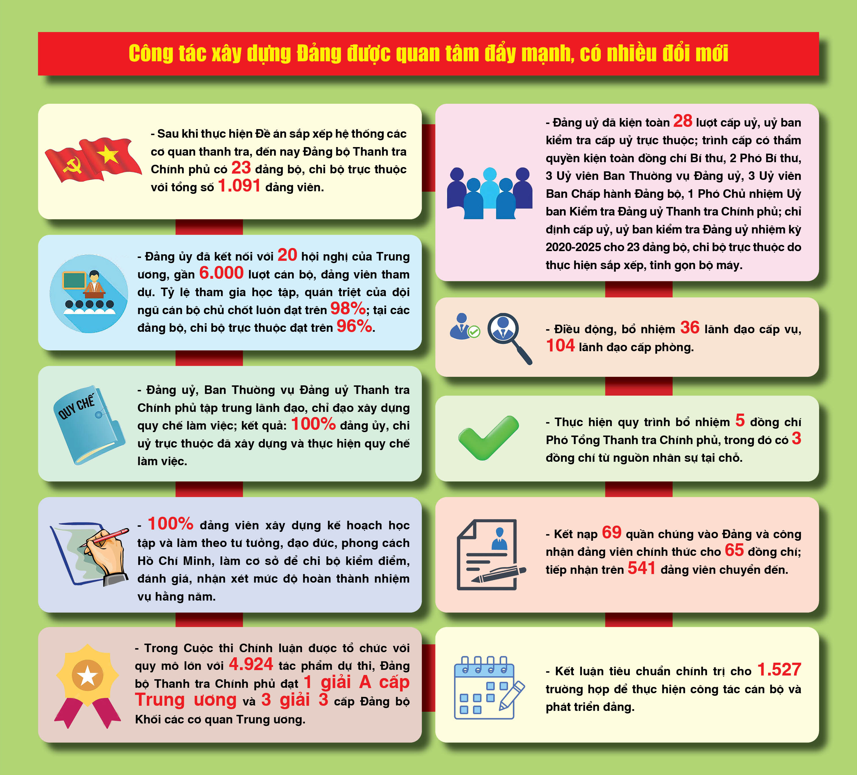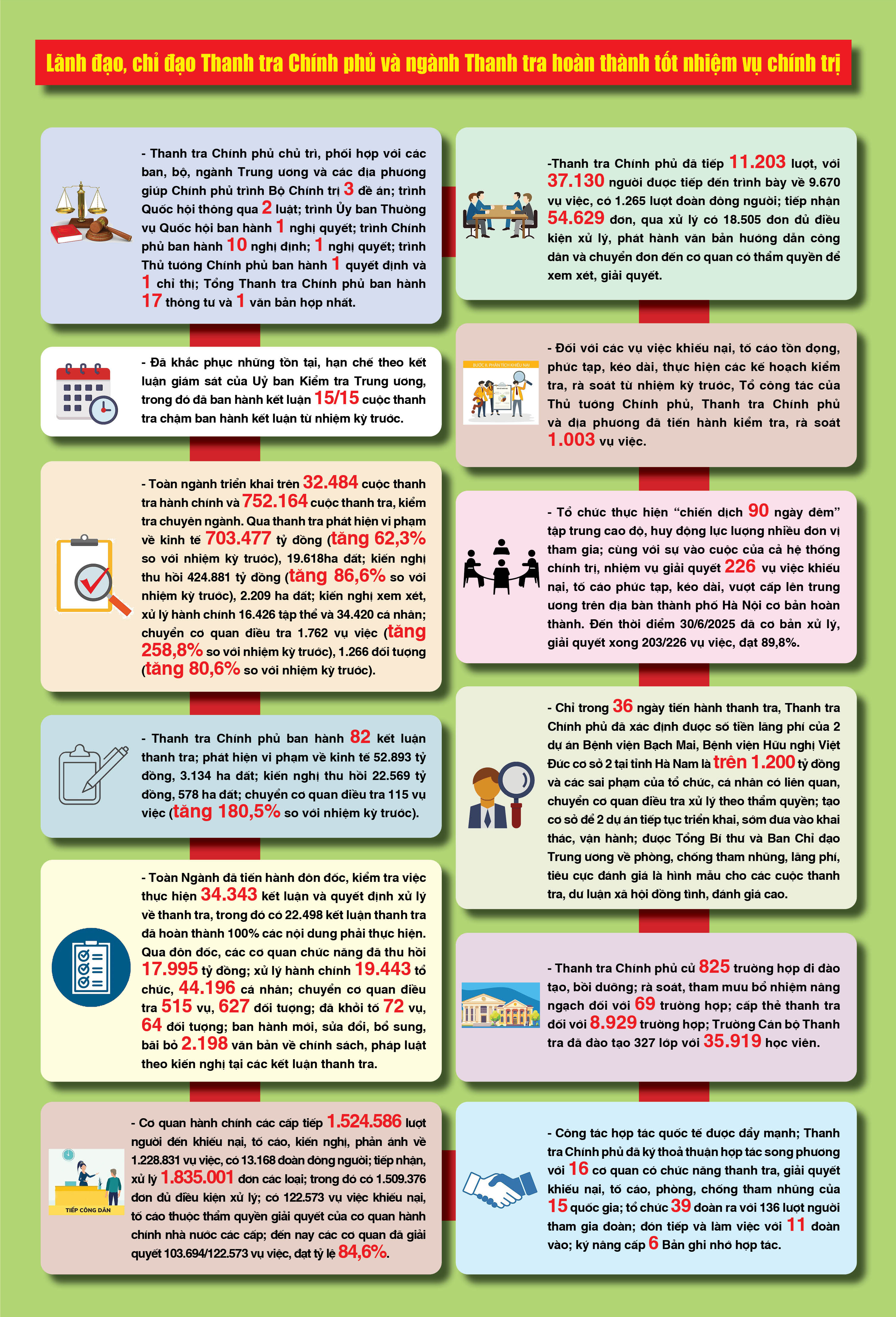 Trước thềm Đại hội đại biểu Đảng bộ Thanh tra Chính phủ lần thứ I, nhiệm kỳ 2025-2030, chúng ta cùng nhìn lại bức tranh rực rỡ về một nhiệm kỳ 2020-2025 thành công vừa qua, với nhiều kết quả quan trọng, được khắc họa bằng những con số ấn tượng.