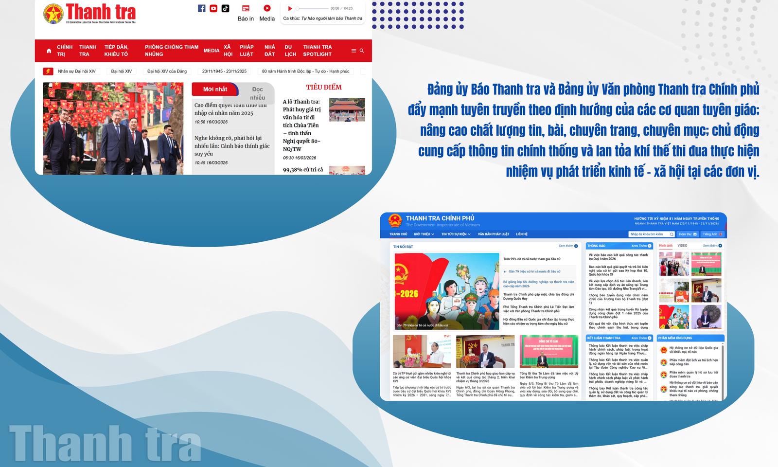 Đảng ủy Báo Thanh tra và Đảng ủy Văn phòng Thanh tra Chính phủ đóng vai trò nòng cốt trong việc lãnh đạo, chỉ đạo công tác thông tin theo chức năng và nhiệm vụ được giao. Nhiệm vụ trọng tâm là phải bám sát định hướng của các cơ quan tuyên giáo cấp trên để đẩy mạnh thông tin bằng nhiều hình thức phong phú và đa dạng.