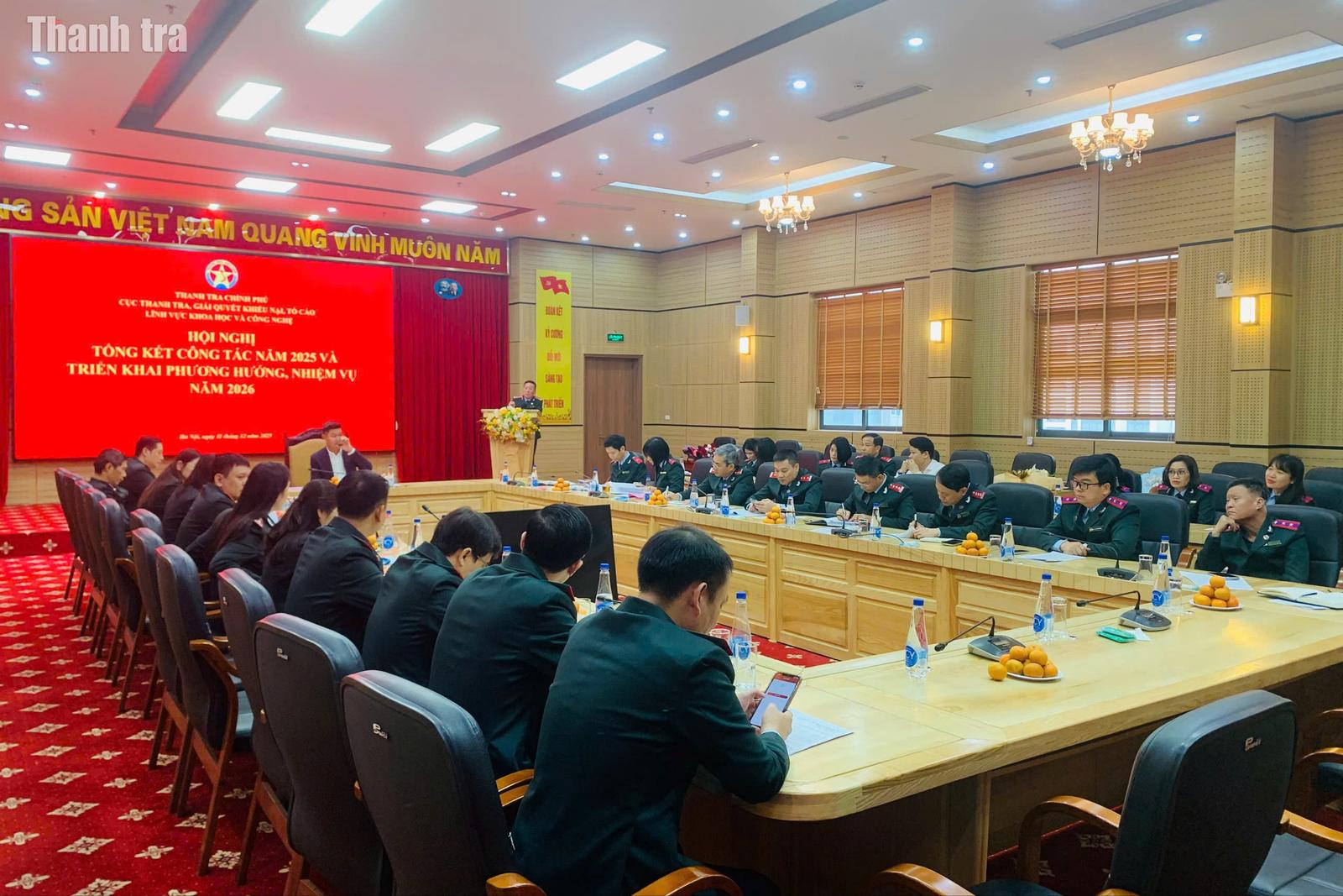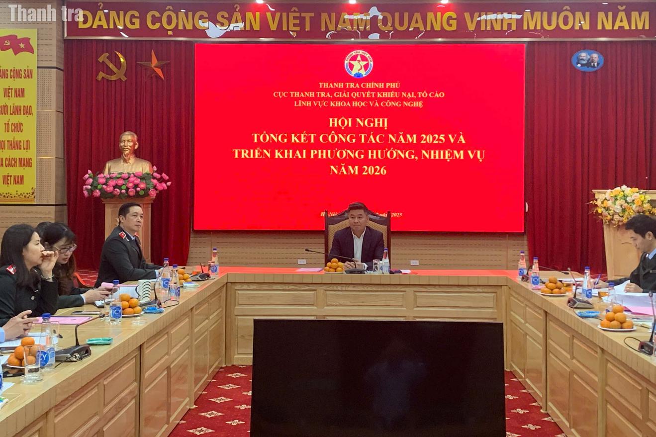 Đó là chỉ đạo của Phó Tổng Thanh tra Nguyễn Văn Cường tại Hội nghị tổng kết công tác năm 2025, triển khai phương hướng, nhiệm vụ năm 2026 của Cục Thanh tra, giải quyết khiếu nại, tố cáo lĩnh vực khoa học và công nghệ (Cục XII), Thanh tra Chính phủ được tổ chức sáng nay (11/12).