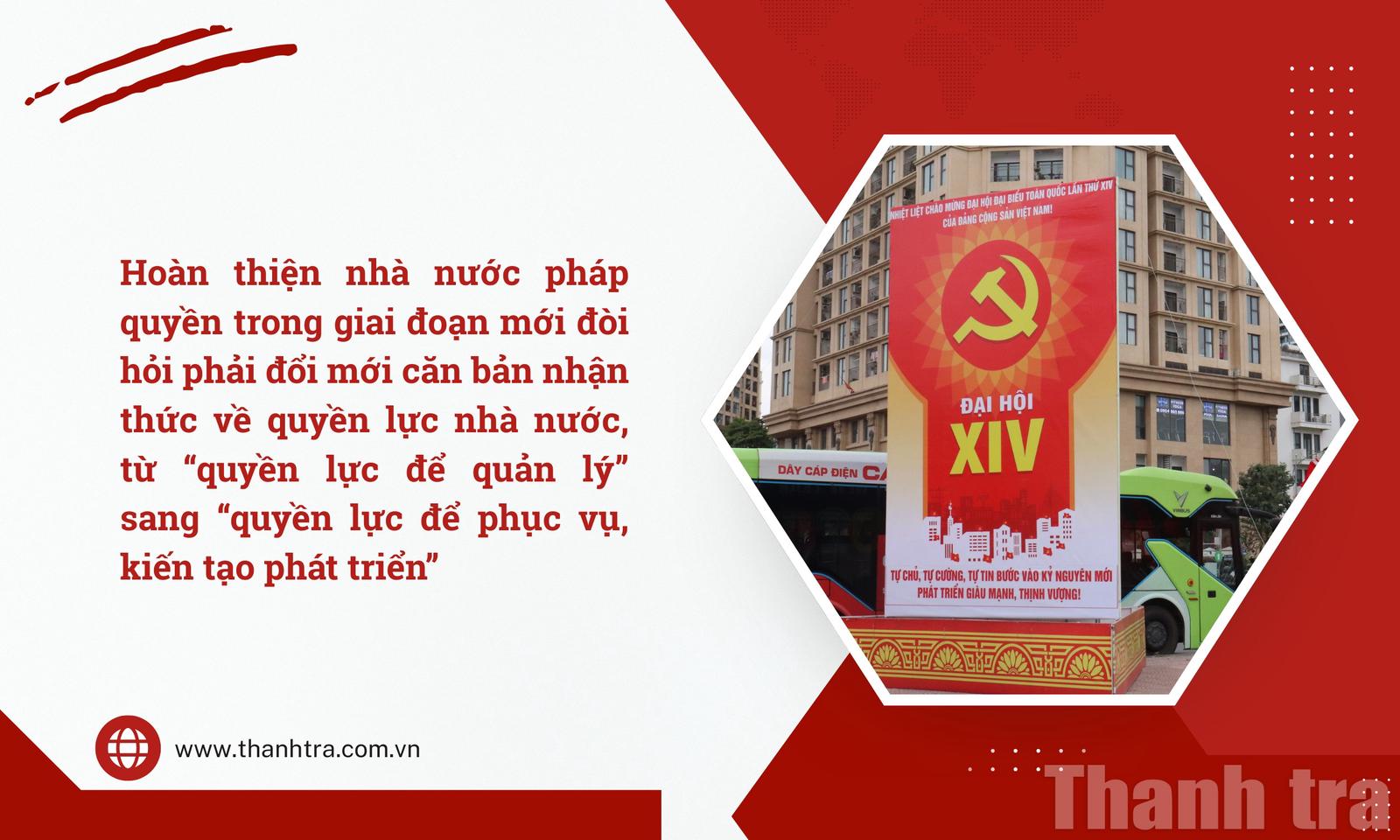 Theo GS. TS Phan Trung Lý, nguyên Chủ nhiệm Ủy ban Pháp luật của Quốc hội hoàn thiện Nhà nước pháp quyền trong giai đoạn mới đòi hỏi phải đổi mới căn bản nhận thức về quyền lực Nhà nước, từ “quyền lực để quản lý” sang “quyền lực để phục vụ, kiến tạo phát triển”.