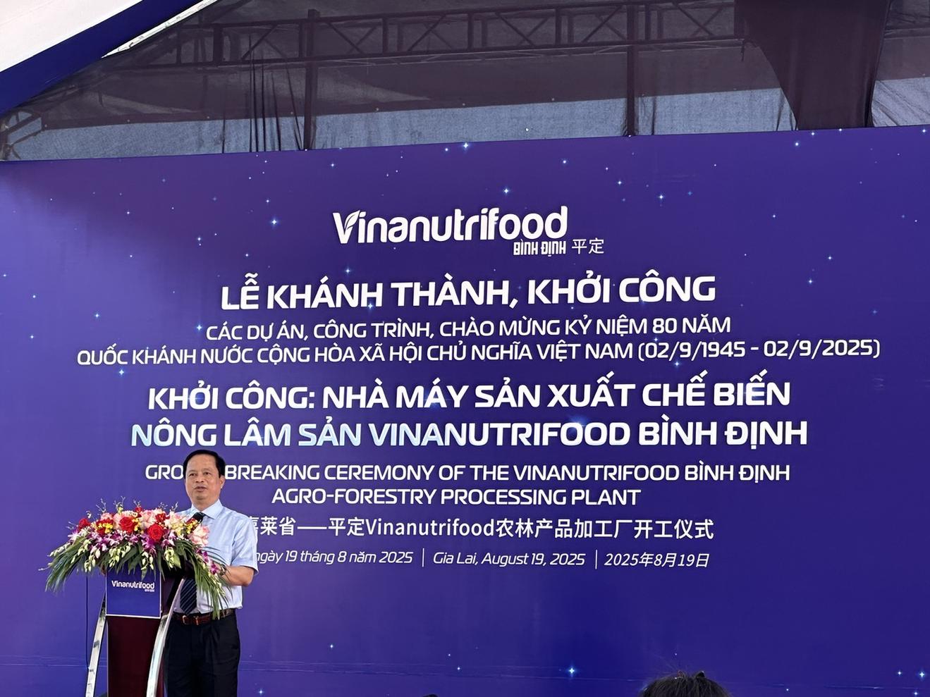 Lễ khởi công Nhà máy sản xuất chế biến nông lâm sản Vinanutrifood Bình Định. Ảnh: BT