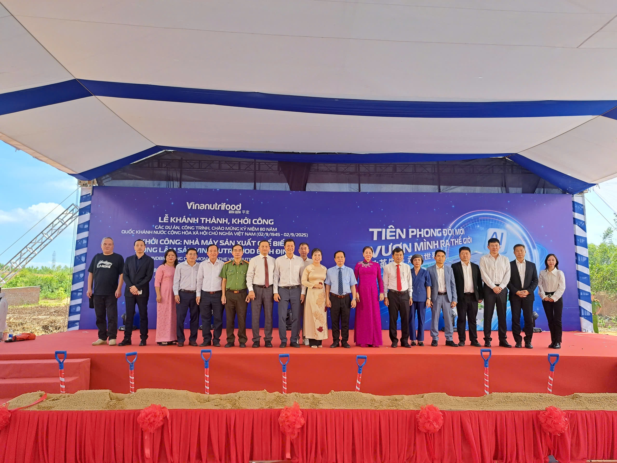 Ngày 19/8/2025, tại thôn 2 – xã Tây Sơn, tỉnh Gia Lai, Công ty Cổ phần Vinanutrifood phối hợp cùng UBND tỉnh Gia Lai, các sở ban ngành và đơn vị liên quan đã long trọng tổ chức Lễ khởi công Nhà máy Vinanutrifood Bình Định.