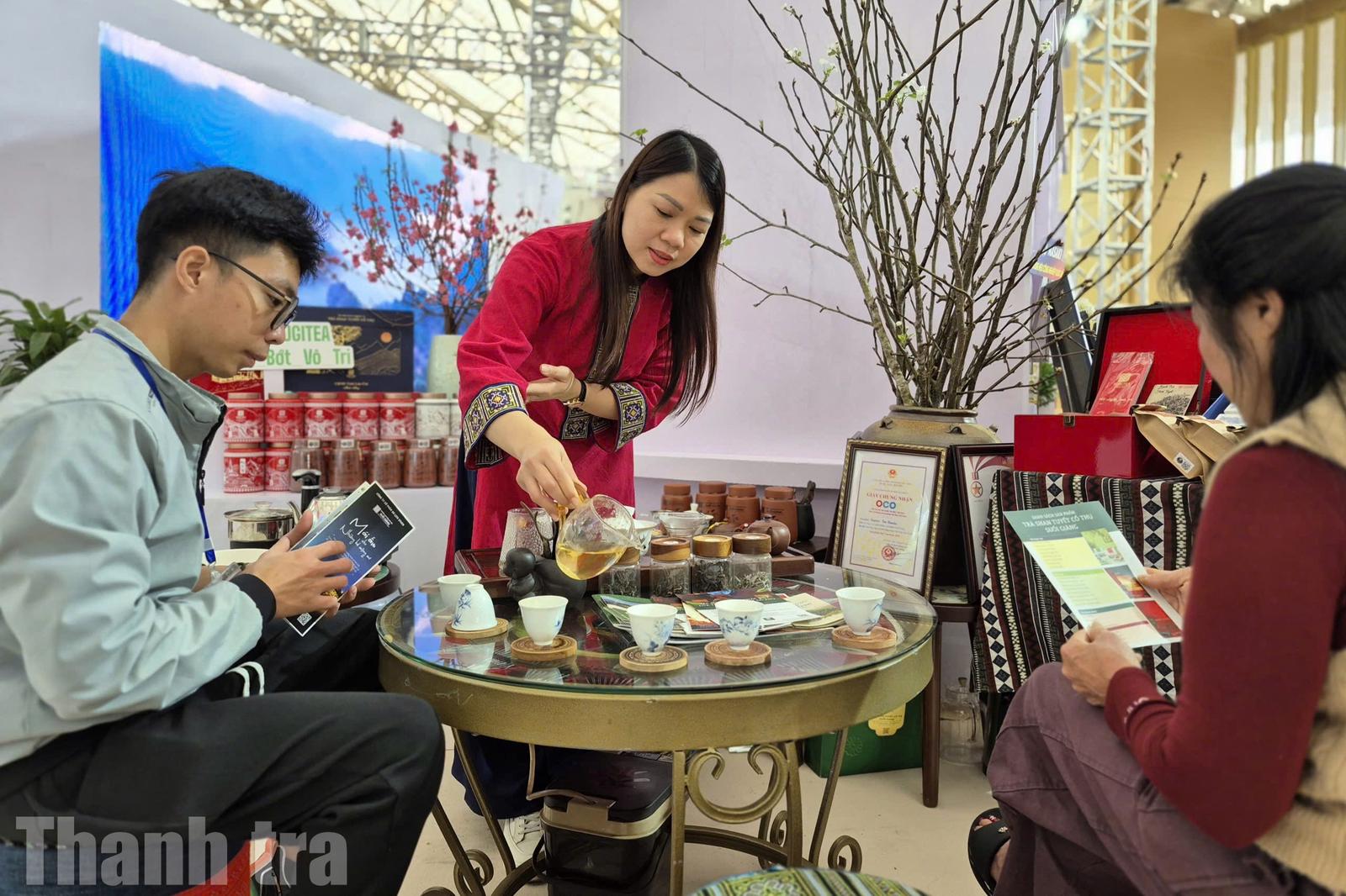 Bên cạnh hoạt động trưng bày, Lào Cai còn tổ chức không gian trải nghiệm thưởng trà đặc sắc, giúp khách tham quan cảm nhận trực tiếp hương vị tinh túy của vùng cao.