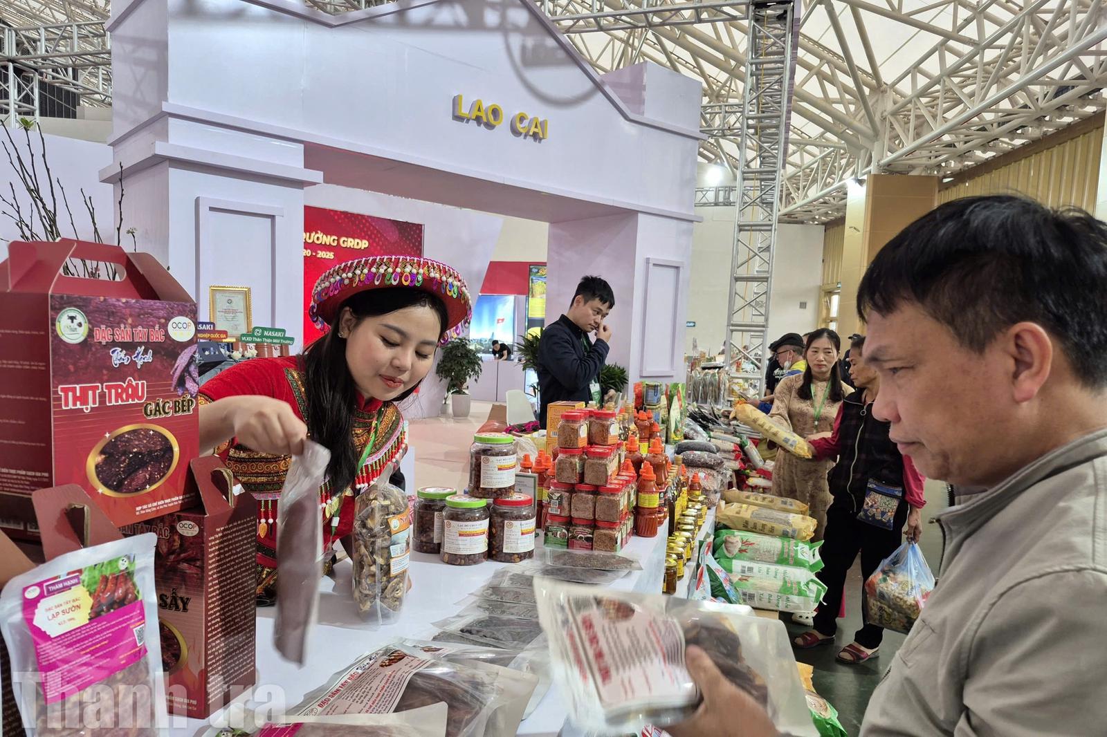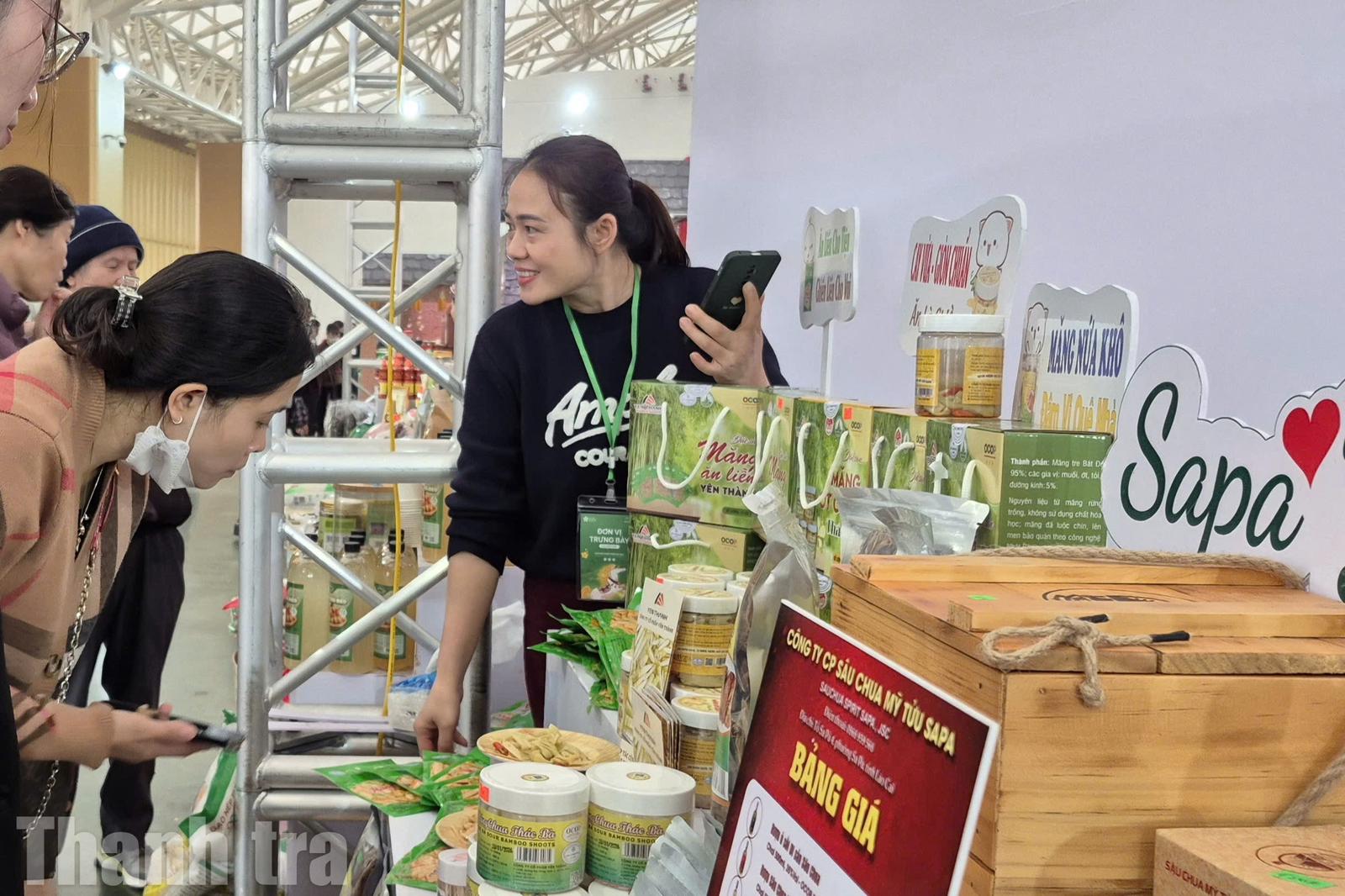 Sản phẩm nông nghiệp tiêu biểu của Lào Cai tại hội chợ. Ảnh: TM