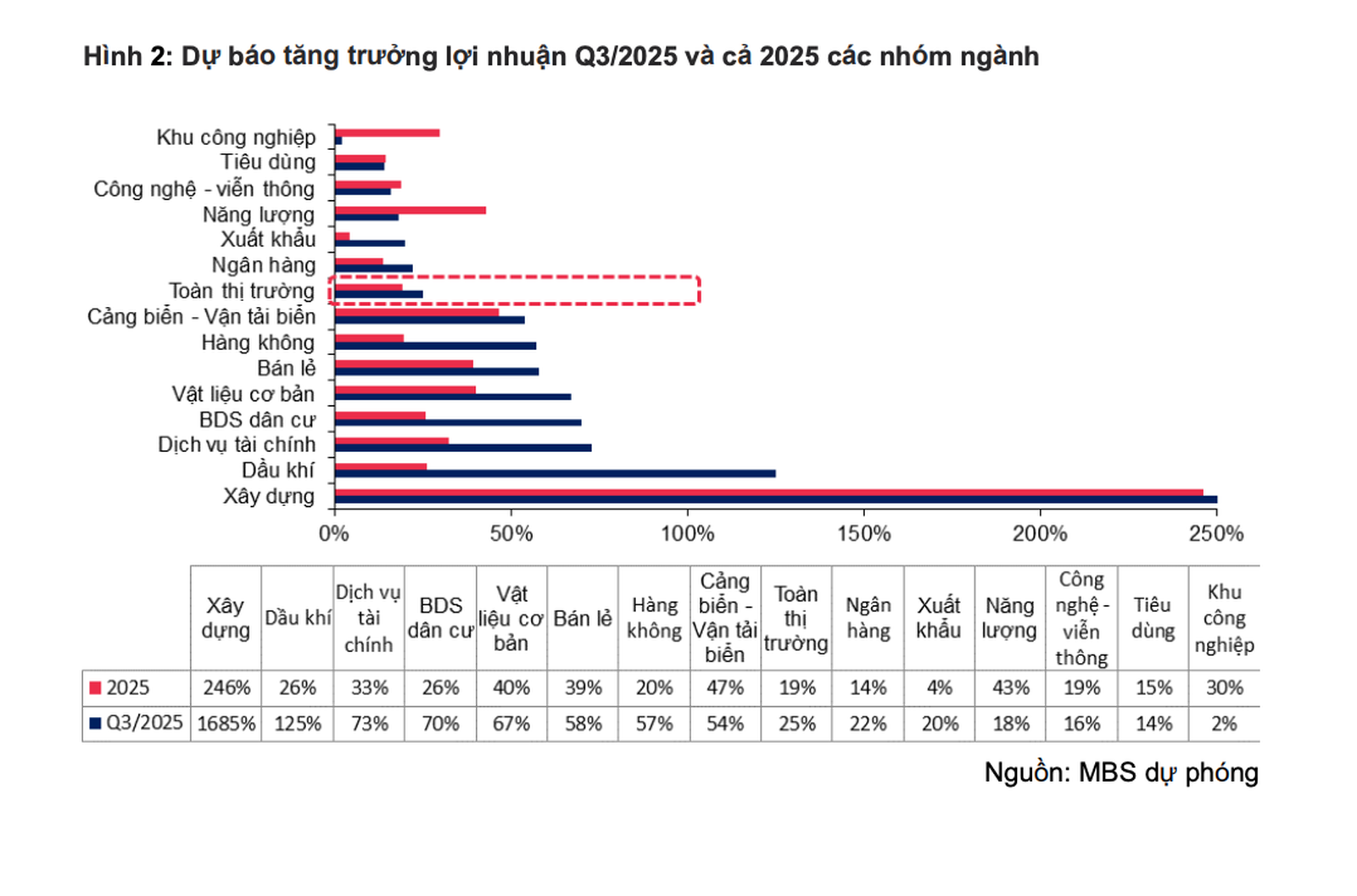 Ngoài ra, ngành cảng biển và vận tải biển cũng duy trì đà tăng trưởng tích cực. Xuất nhập khẩu quý 3/2025 tính đến giữa tháng 9 tăng 20,1% so với cùng kỳ, kéo sản lượng qua cảng tăng mạnh. Các cảng nước sâu như Gemalink và doanh nghiệp vận tải như HAH, GMD được dự báo sẽ công bố lợi nhuận tích cực.