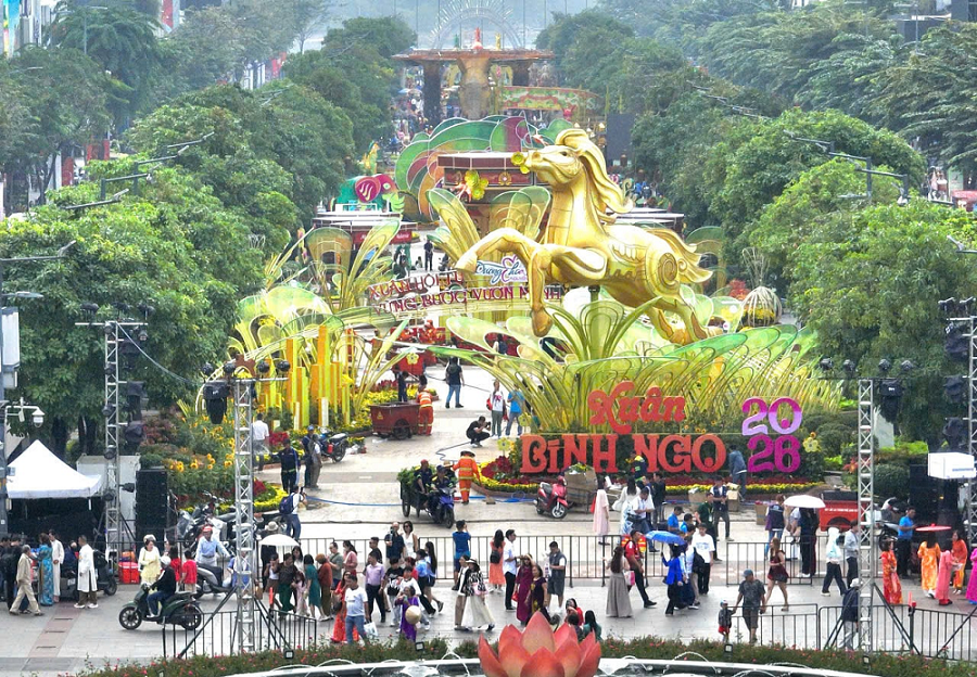 Tại TPHCM, tổng lượt khách ước đạt 4,32 triệu, tăng 35%; tổng thu từ khách du lịch đạt khoảng 12.150 tỷ đồng, tăng 42,9%. Công suất phòng bình quân đạt 75%. Các sản phẩm du lịch đường sông, city tour bằng xe buýt hai tầng, trải nghiệm không gian Tết truyền thống thu hút đông đảo du khách.