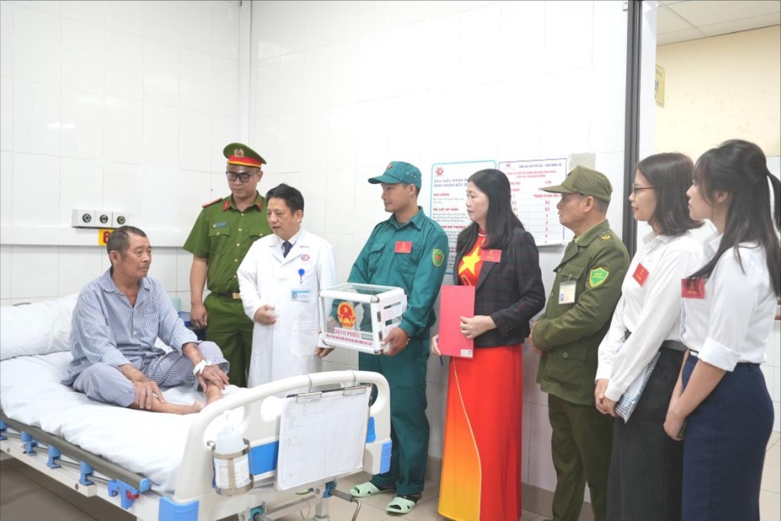Cử tri đang điều trị tại Khoa Hồi sức tích cực, Bệnh viện Đa khoa tỉnh Quảng Ninh thực hiện quyền bầu cử khi Tổ bầu cử đưa hòm phiếu phụ đến tận giường bệnh. Ảnh: QMG