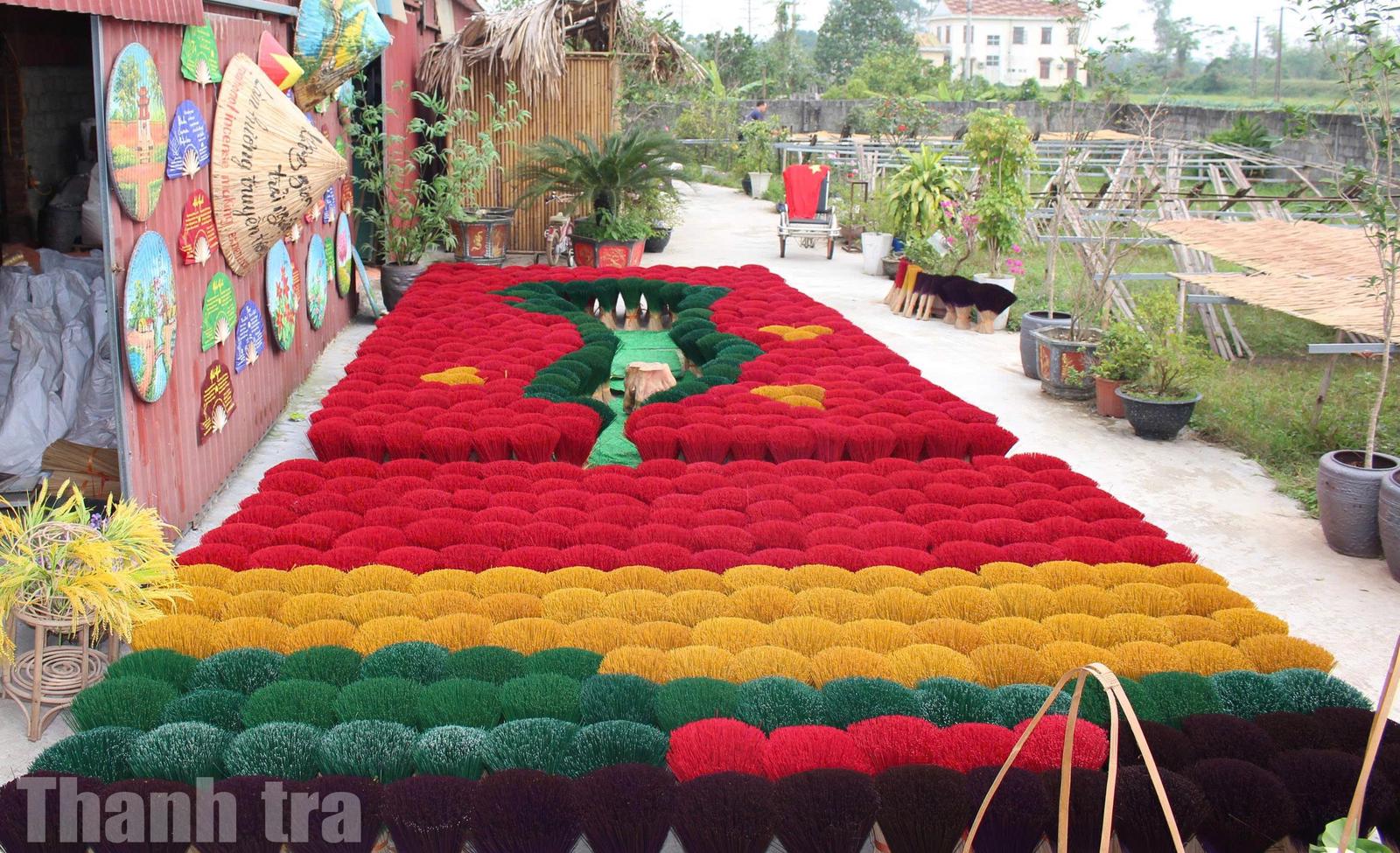 Dạo quanh điểm du lịch làng nghề những ngày này, không khó để bắt gặp những đoàn khách từ Tây Âu, Nhật Bản, Hàn Quốc, Trung Quốc đang thích thú check-in bên những “đóa hoa” tăm hương đỏ rực.