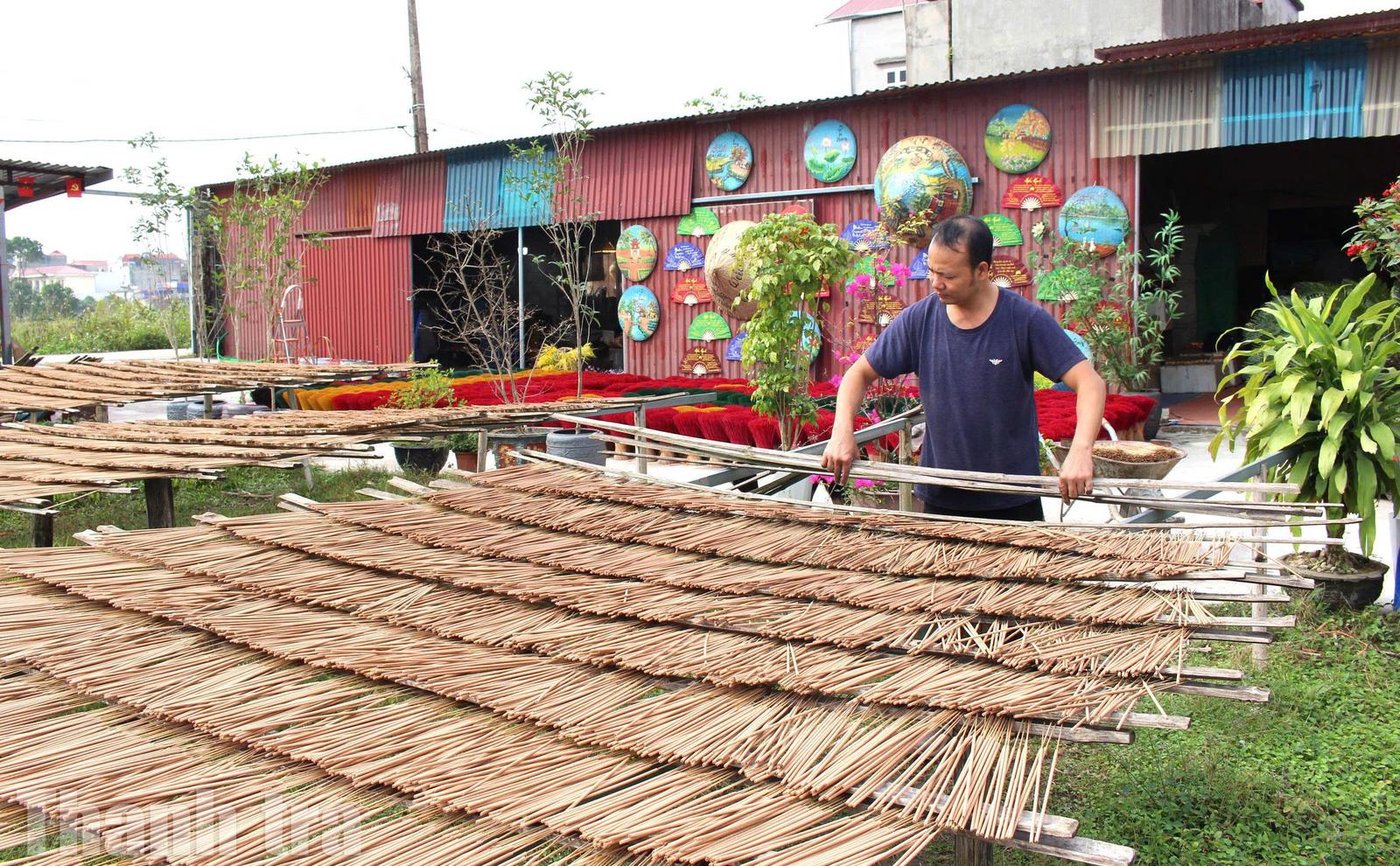 Những "đoá hoa" hương "nở" trong cơ sở sản xuất tăm hương của gia đình chị Nguyễn Thu Phương. Ảnh: HH