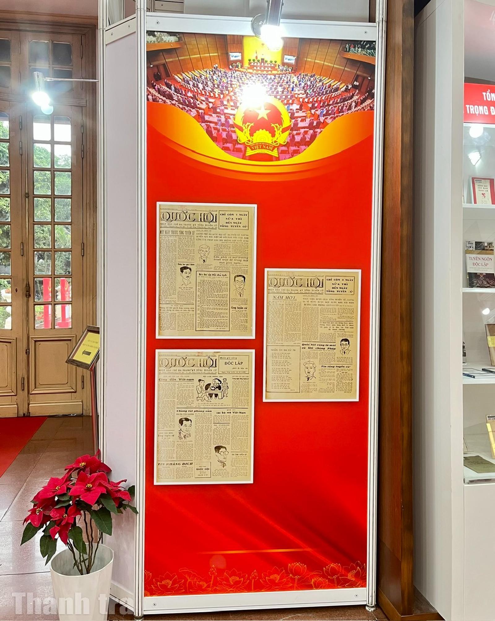 2. Quốc hội Việt Nam trong hành trình đấu tranh giành độc lập dân tộc và thống nhất đất nước: Trưng bày tư liệu viết về việc tổ chức và kiện toàn bộ máy của Quốc hội theo hướng gọn nhẹ, cơ động nhưng hiệu lực, đồng hành cùng Nhân dân đấu tranh giành độc lập dân tộc và thống nhất đất nước; vai trò của Quốc hội trong việc huy động sức mạnh toàn dân.