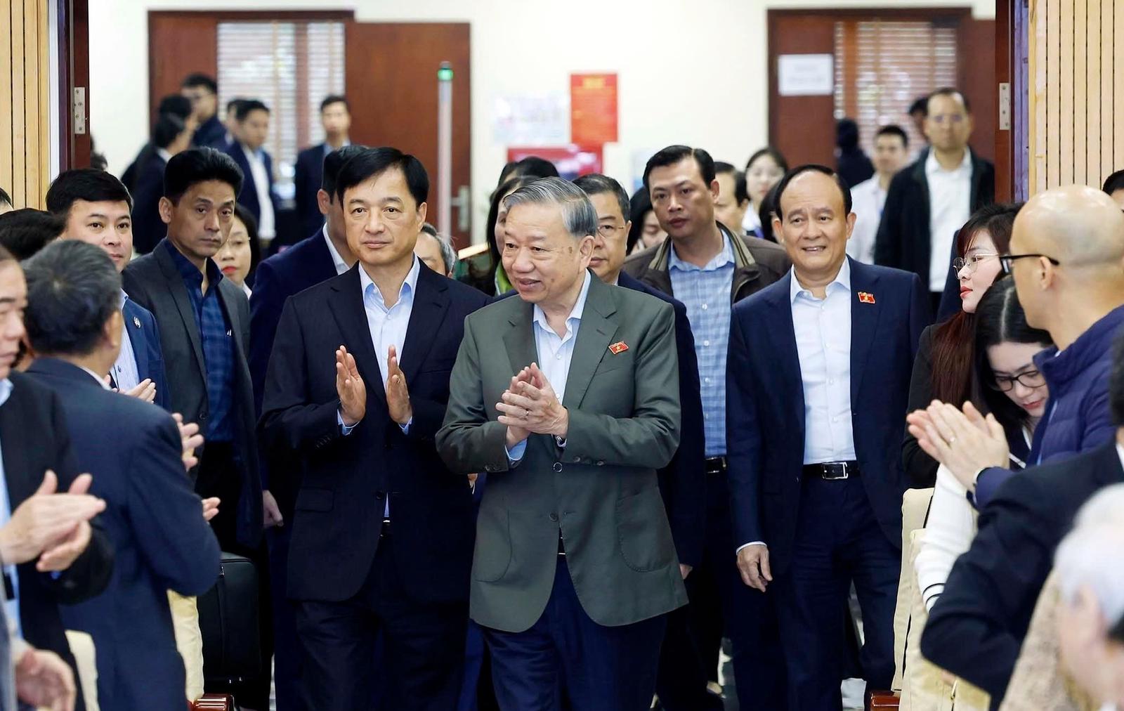Tổng Bí thư Tô Lâm tiếp xúc cử tri để thông tin về kết quả kỳ họp 10 Quốc hội khoá XV. Ảnh: Như Ý