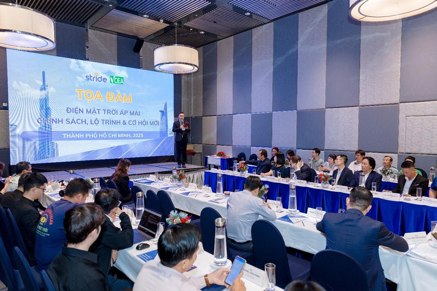 Ngày 23/12, Văn phòng đại diện Hiệp hội Năng lượng Sạch Việt Nam (VCEA) tại TPHCM và Công ty Stride chính thức ký kết Thỏa thuận hợp tác chiến lược xây dựng bộ tiêu chuẩn kỹ thuật chất lượng cao trong thi công điện mặt trời mái nhà, đồng thời tổ chức tọa đàm chính sách về điện mặt trời và trao giấy chứng nhận cho một số nhà thầu thi công đạt chuẩn chất lượng cao.