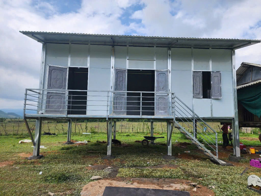 Ngôi nhà mới thiết kế theo kiểu nhà sàn truyền thống.