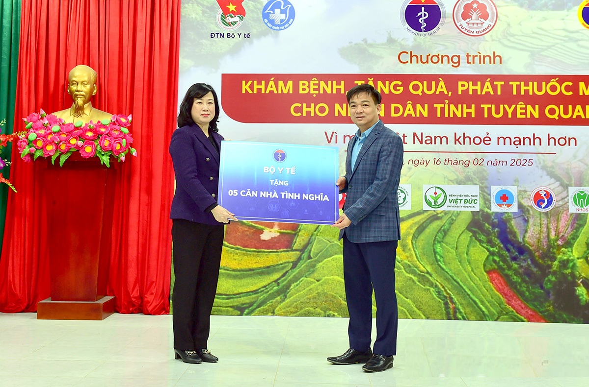 Bộ trưởng Bộ Y tế Đào Hồng Lan tặng 5 căn nhà tình nghĩa cho Nhân dân xã Tân Long, huyện Yên Sơn. Ảnh: ND