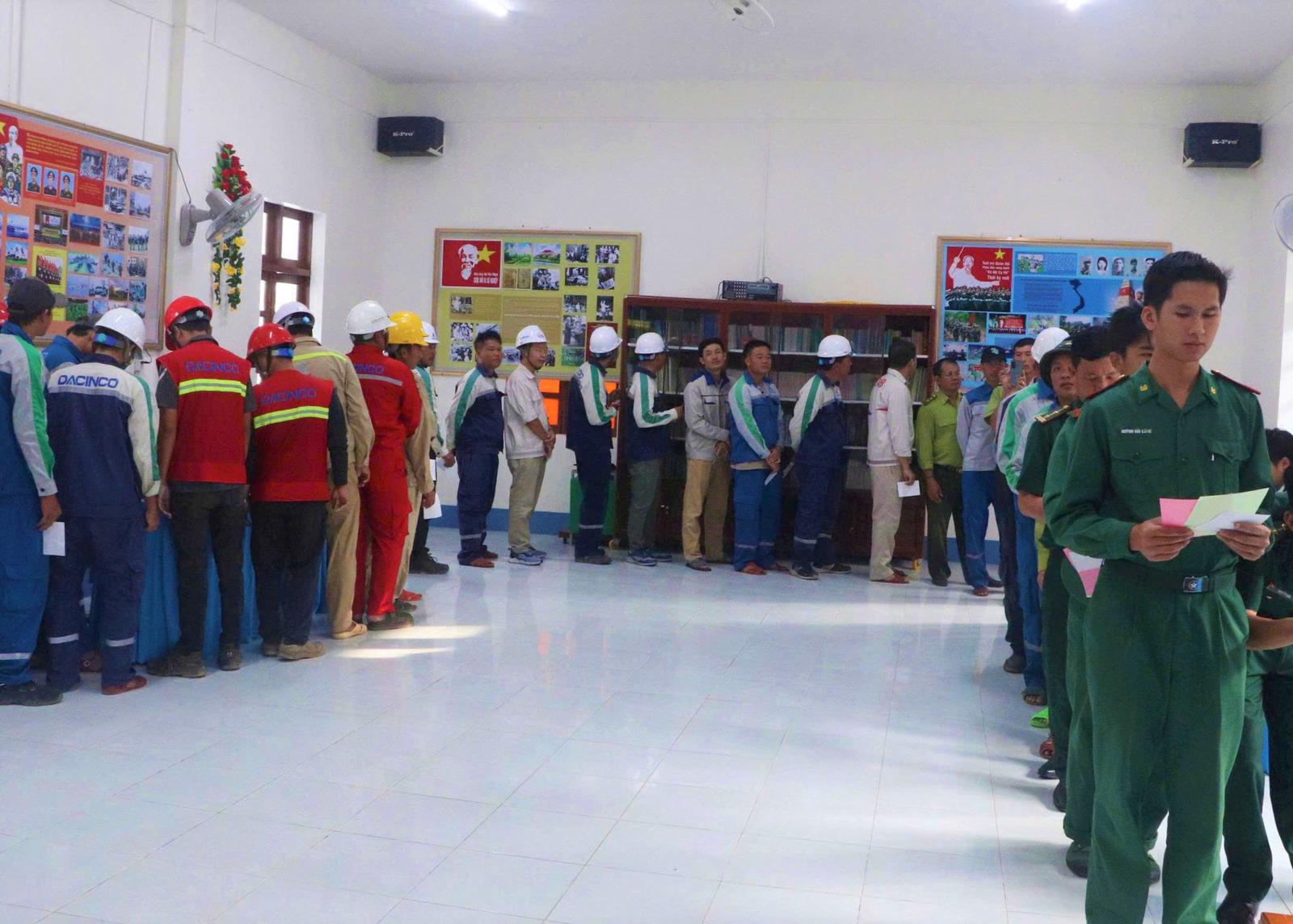 Cán bộ, chiến sĩ tham gia bỏ phiếu tại điểm bỏ phiếu Đồn Biên phòng Hòn Chuối. Ảnh: A.X