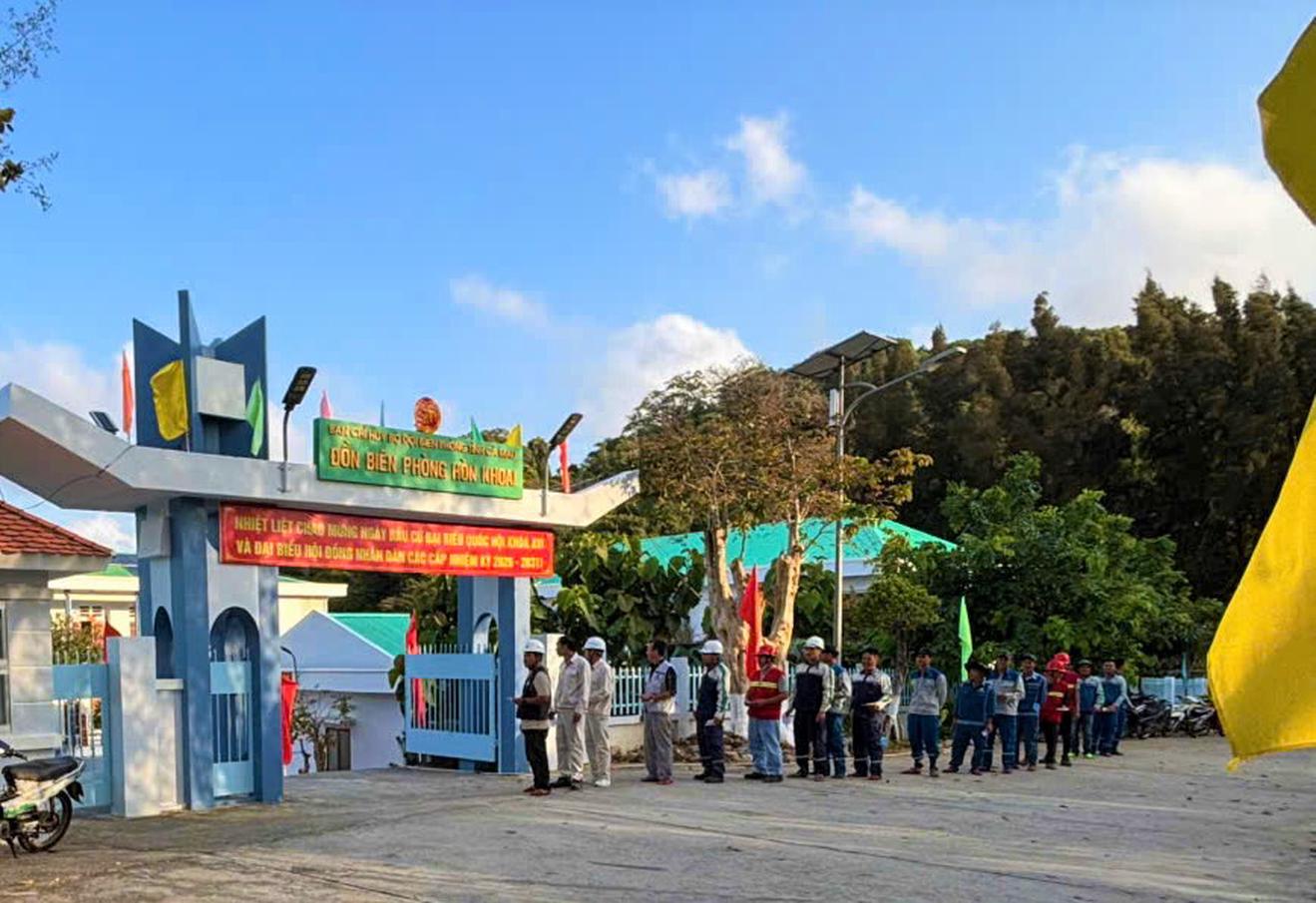 Cử tri tham gia bỏ phiếu tại điểm bỏ phiếu Đồn Biên phòng Hòn Khoai. Ảnh: A.X