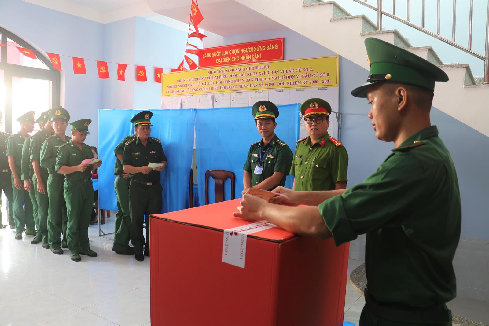Cũng trong sáng cùng ngày, tại cụm đảo Hòn Khoai, xã Đất Mũi, cử tri gồm lực lượng bộ đội biên phòng, trạm ra đa, hải đăng, kiểm lâm và công nhân đang thi công các công trình trọng điểm quốc gia cũng bước vào khu vực bỏ phiếu số 4. Mọi người đều thể hiện rõ niềm tự hào khi được cầm trên tay lá phiếu, lựa chọn những đại biểu có đủ đức, đủ tài để đại diện cho ý chí và nguyện vọng của Nhân dân.
