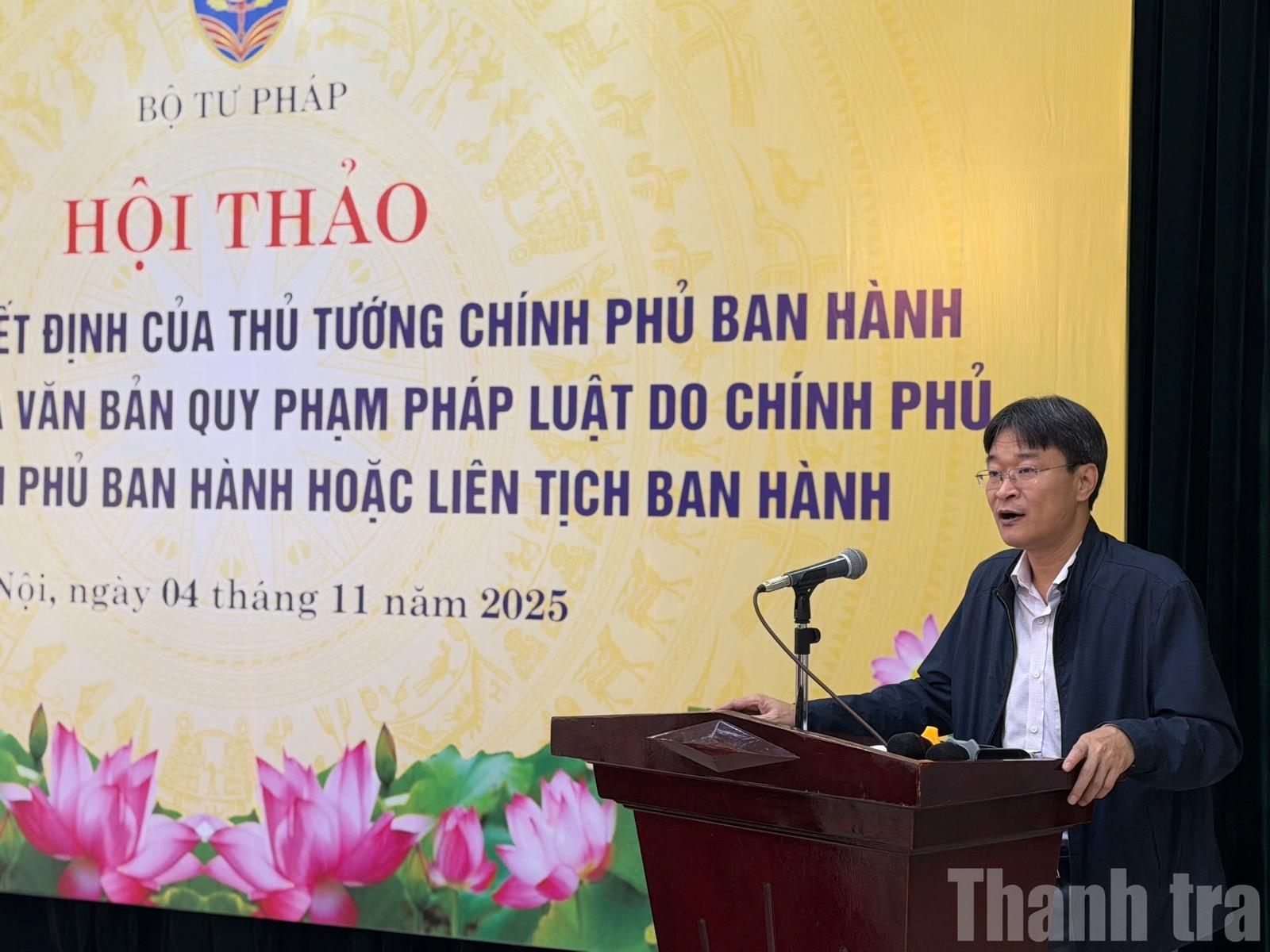 Sáng 4/11, Bộ Tư pháp tổ chức hội thảo góp ý Dự thảo Quyết định của Thủ tướng Chính phủ ban hành Quy chế tự kiểm tra văn bản quy phạm pháp luật do Chính phủ, Thủ tướng Chính phủ ban hành hoặc liên tịch ban hành.