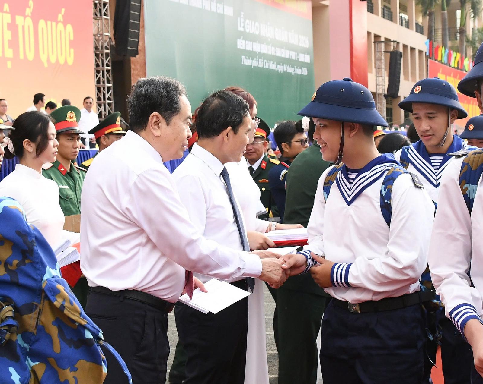 Chủ tịch Quốc hội dự Lễ giao nhận quân năm 2026 của TPHCM. Ảnh: QH