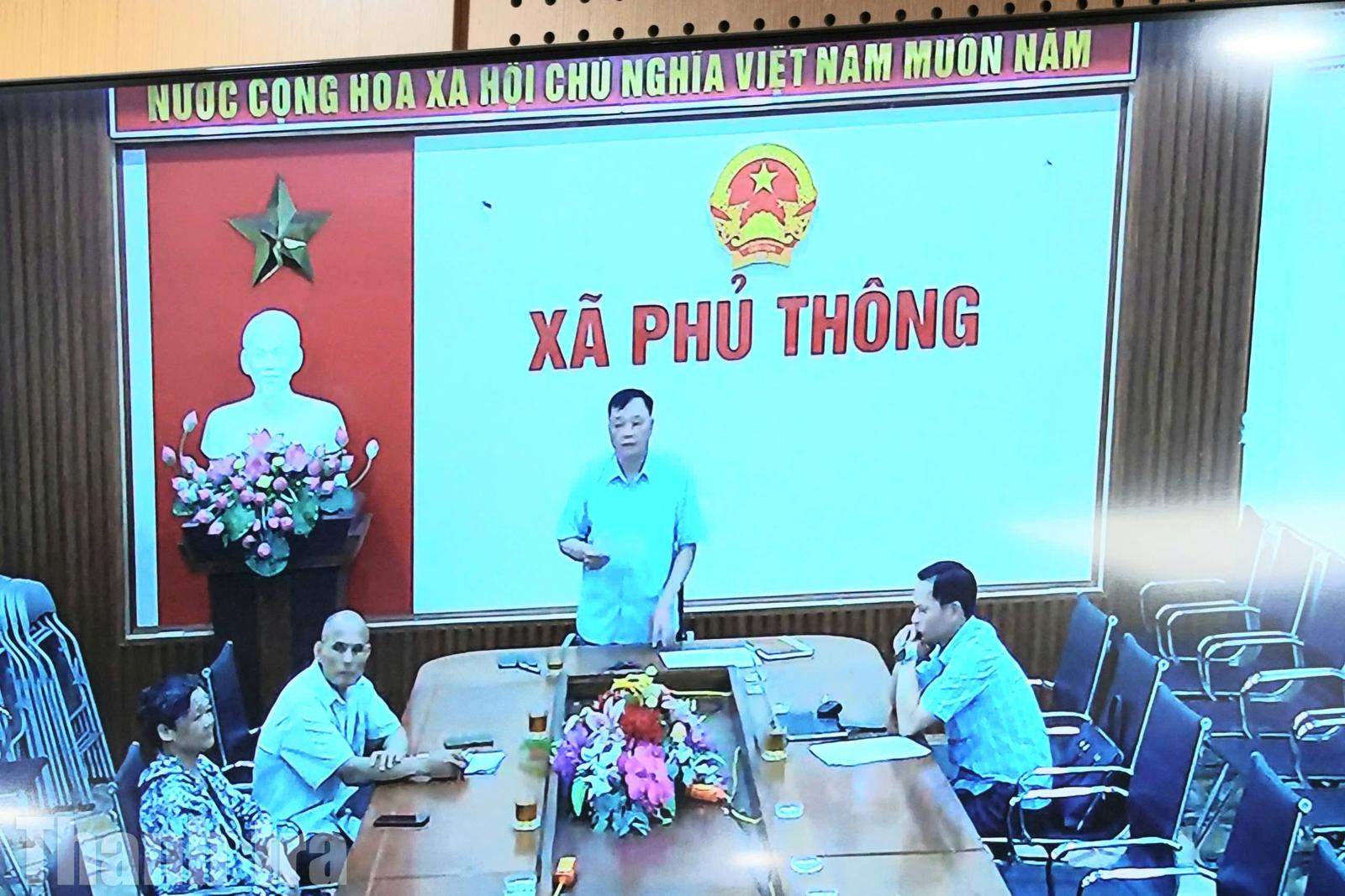 Quang cảnh điểm cầu UBND xã Phủ Thông - nơi công dân trình bày kiến nghị theo hình thức trực tuyến. Ảnh: ĐT