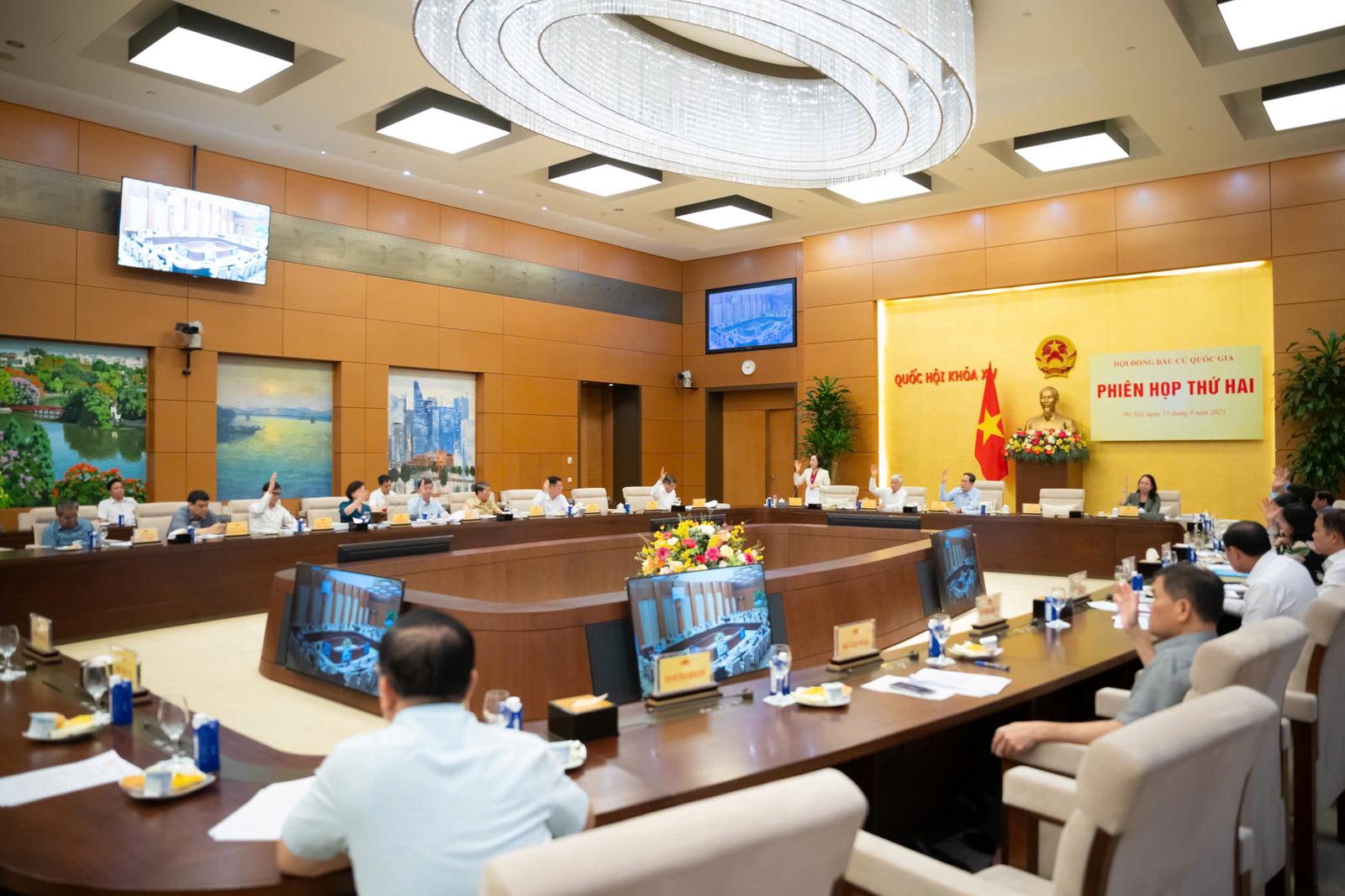 Hội đồng Bầu cử quốc gia đã biểu quyết thông qua dự thảo Nghị quyết Hướng dẫn về mẫu hồ sơ ứng cử, phiếu bầu cử và các loại mẫu văn bản sử dụng trong công tác bầu cử. Ảnh: P.Thắng