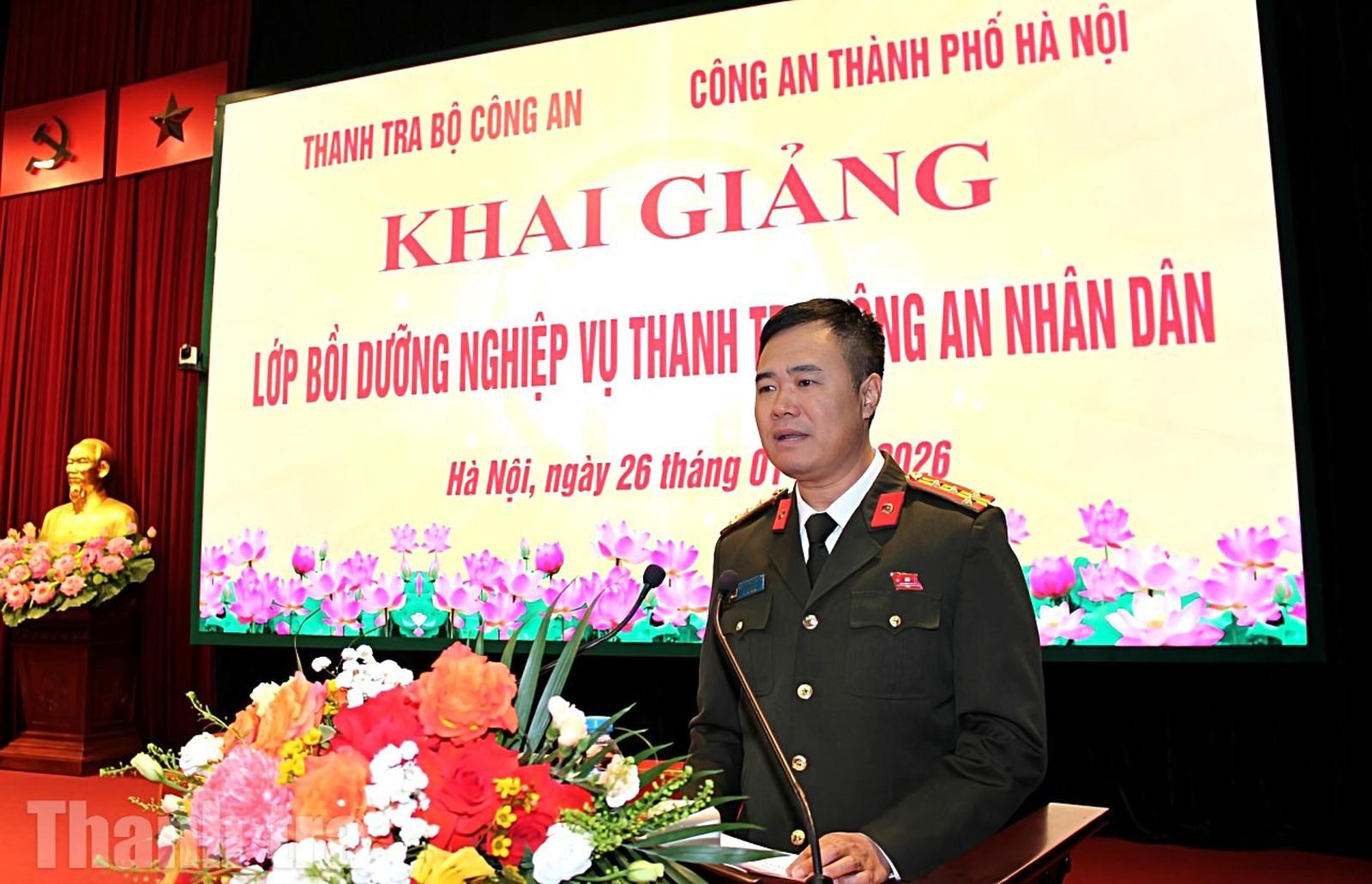 Thanh tra Bộ Công an phối hợp với Công an thành phố Hà Nội tổ chức khai giảng Lớp bồi dưỡng nghiệp vụ thanh tra CAND năm 2026. Ảnh: Trọng Tài