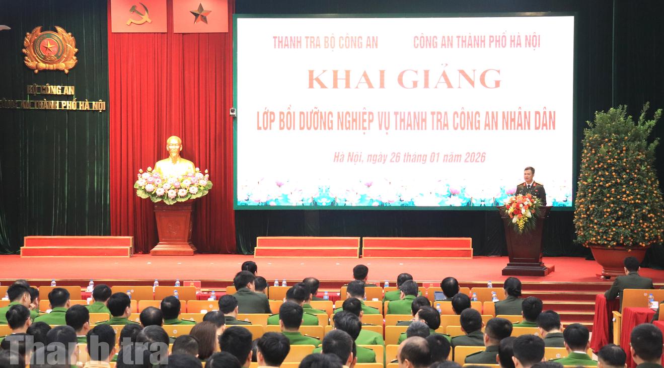Sáng 26/1, tại Hà Nội, Thanh tra Bộ Công an phối hợp với Công an thành phố Hà Nội tổ chức khai giảng Lớp bồi dưỡng nghiệp vụ thanh tra Công an Nhân dân (CAND) năm 2026. Khóa học được xem là "chìa khóa" để chuẩn hóa đội ngũ và nâng cao hiệu lực, hiệu quả công tác thanh tra trước những yêu cầu cấp thiết của thực tiễn.