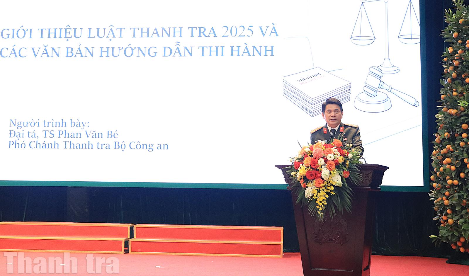 Phát biểu chỉ đạo, định hướng cho lớp học, Đại tá Phan Văn Bé - Phó Chánh Thanh tra Bộ Công an nhấn mạnh tính chất đặc thù của lĩnh vực thanh tra trong tình hình mới.