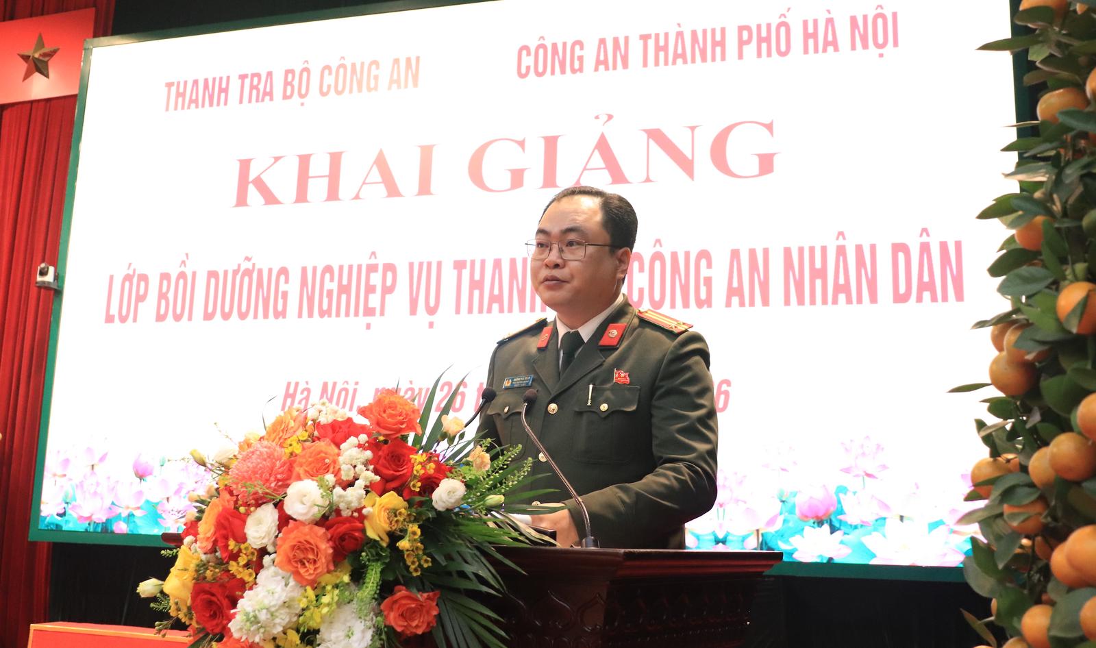 Giao nhiệm vụ cho lớp học, Phó Giám đốc Công an thành phố Hà Nội đề nghị các học viên tham gia với tinh thần nghiêm túc, cầu thị và trách nhiệm cao; tập trung nghiên cứu, tiếp thu đầy đủ các nội dung do các báo cáo viên truyền đạt.
