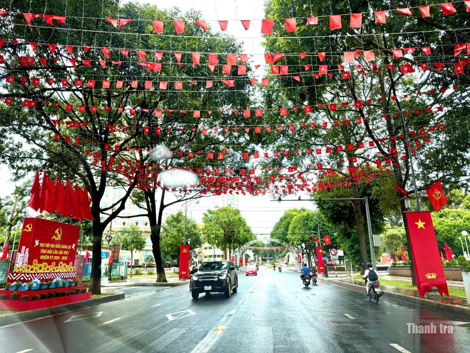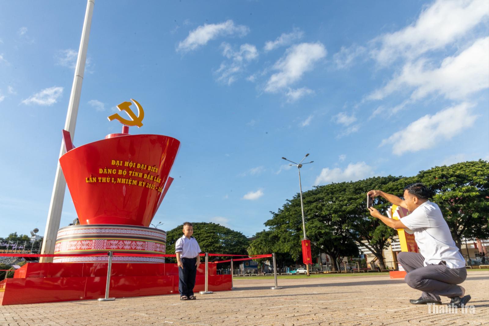 Hình ảnh tuyên truyền cổ động trực quan về Đại hội tại các khu vực trung tâm, trục đường chính của tỉnh Đắk Lắk. Ảnh: NG