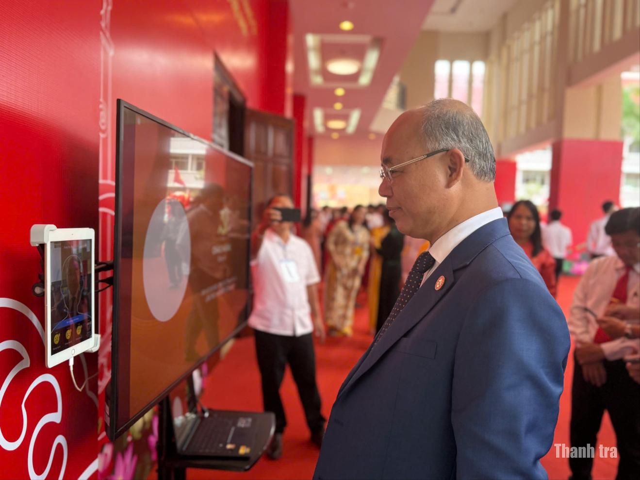 Cụ thể, nhà cung cấp đã bố trí 4 máy tính bảng cài đặt sẵn ứng dụng vnFace, kết nối với 4 ti vi màn hình lớn. Thay vì sử dụng danh sách giấy tờ truyền thống, các đại biểu chỉ cần đứng trước thiết bị để hệ thống xác thực khuôn mặt tự động và tức thời. Sau khi được nhận diện thành công, màn hình sẽ hiển thị hình ảnh, thông tin cùng lời chào mừng, đồng thời hệ thống sẽ chỉ dẫn đại biểu vào đúng số ghế đã được lập trình sẵn. Quy trình này giúp tiết kiệm thời gian đáng kể, đảm bảo tính chính xác và góp phần xây dựng một kỳ đại hội gọn gàng, nhẹ nhàng.