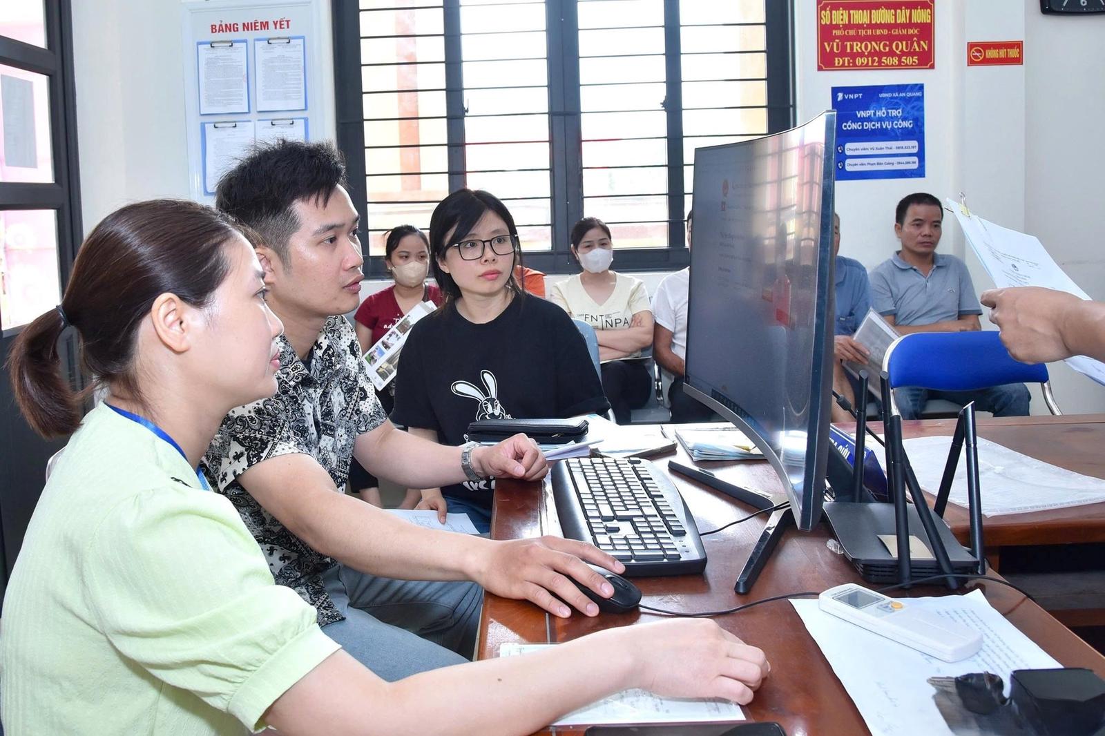 Cán bộ, công chức Trung tâm Phục vụ hành chính công xã An Quang, thành phố Hải Phòng hướng dẫn người dân nộp hồ sơ trực tuyến. Ảnh: Bảo Châu