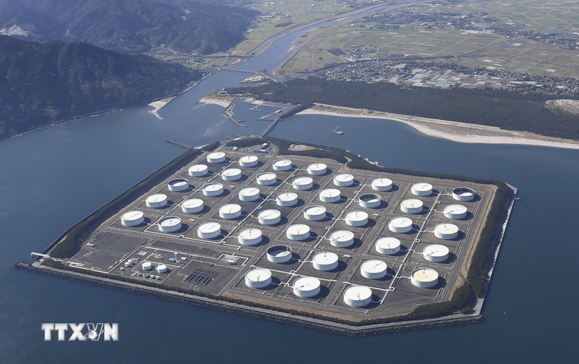 Bể chứa dầu tại kho dự trữ ở Kagoshima, Nhật Bản